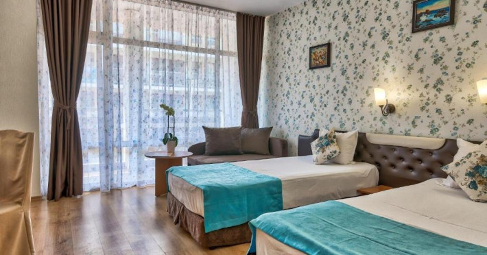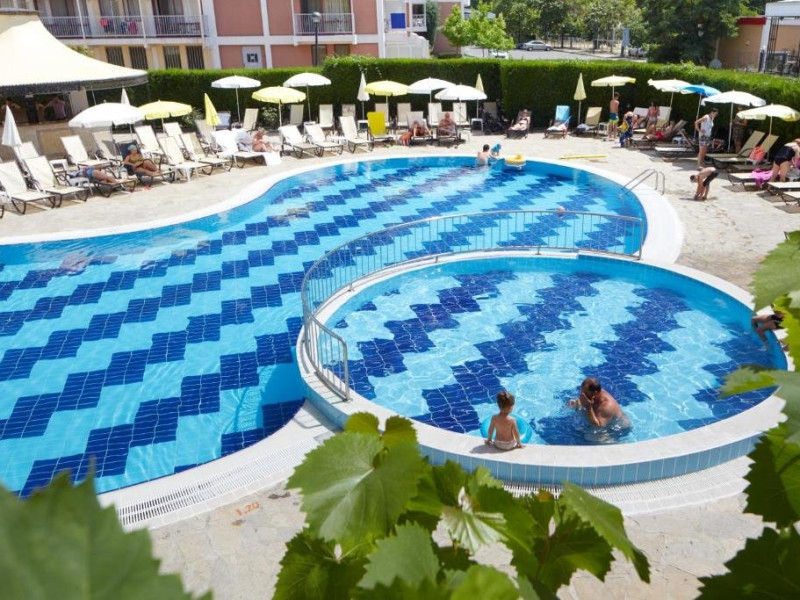 Sport si divertisment: Piscina in aer liber Umbrele si sezlonguri la piscina Badminton, fitness, jocuri de carti, sah Wifi Animatie de 6 ori pe saptamana (aqua zumba, jocuri de cocktail, polo pe apa) in iulie si august Program de spectacole bulgare o data pe saptamana (in iulie si august) Tenis de masa