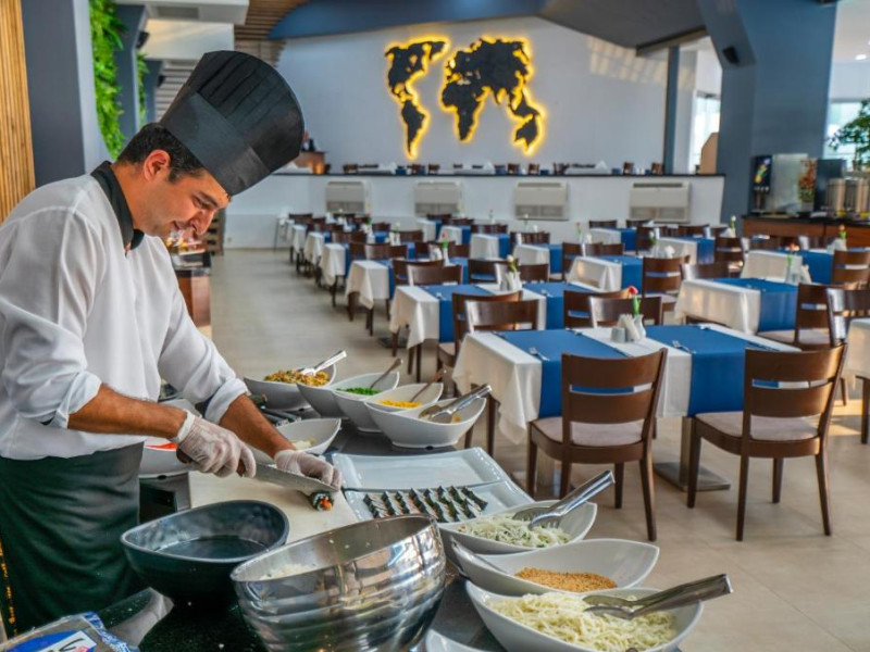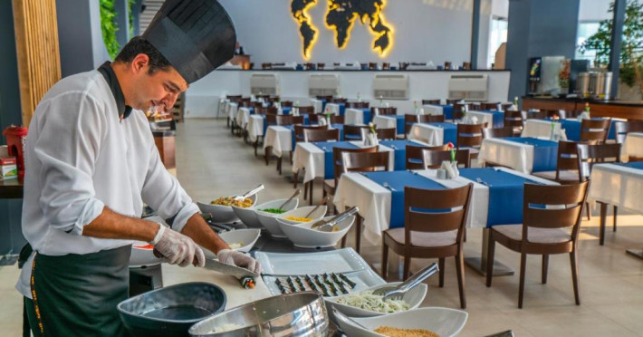 Experiența culinară include 4 restaurante care servesc specialități din bucătăria turcească și internațională, plus mai multe baruri in zona piscinei și pe plajă. Seara, echipa de animație organizează spectacole și activități distractive pentru toate varstele.