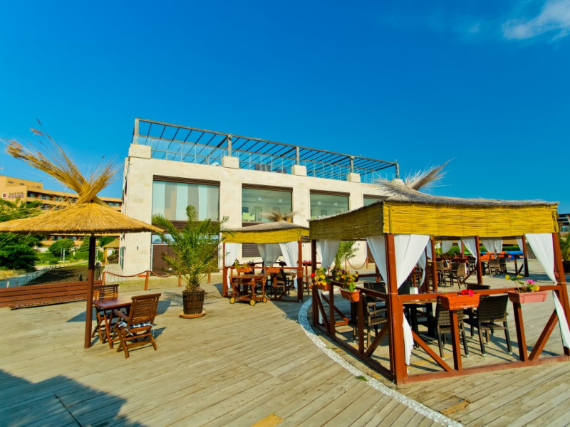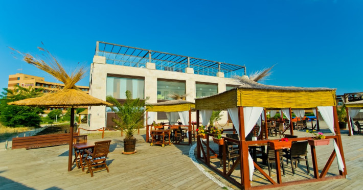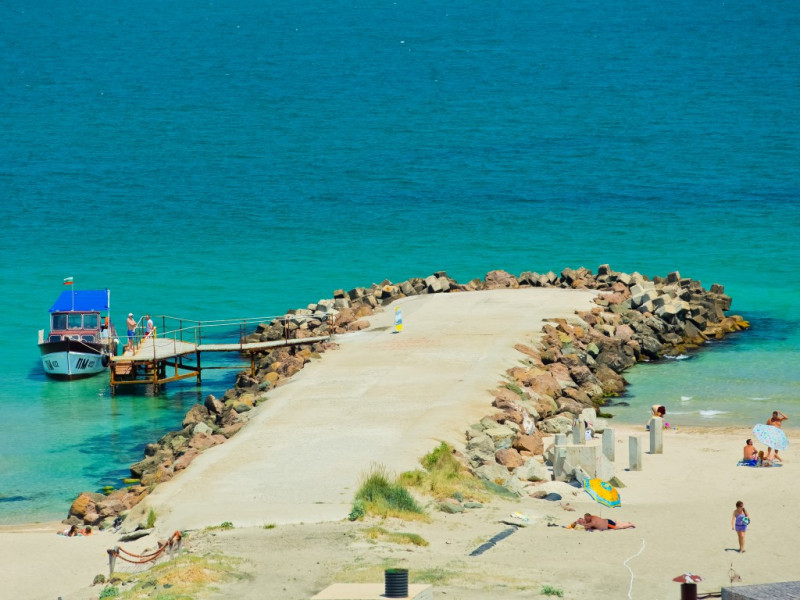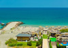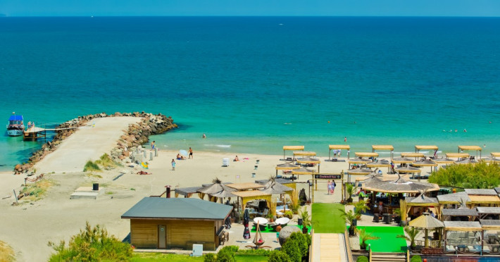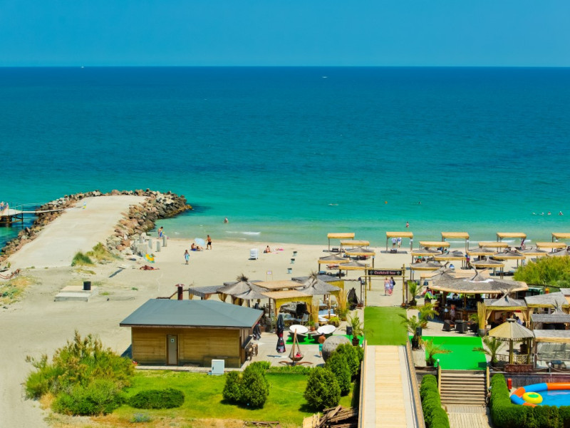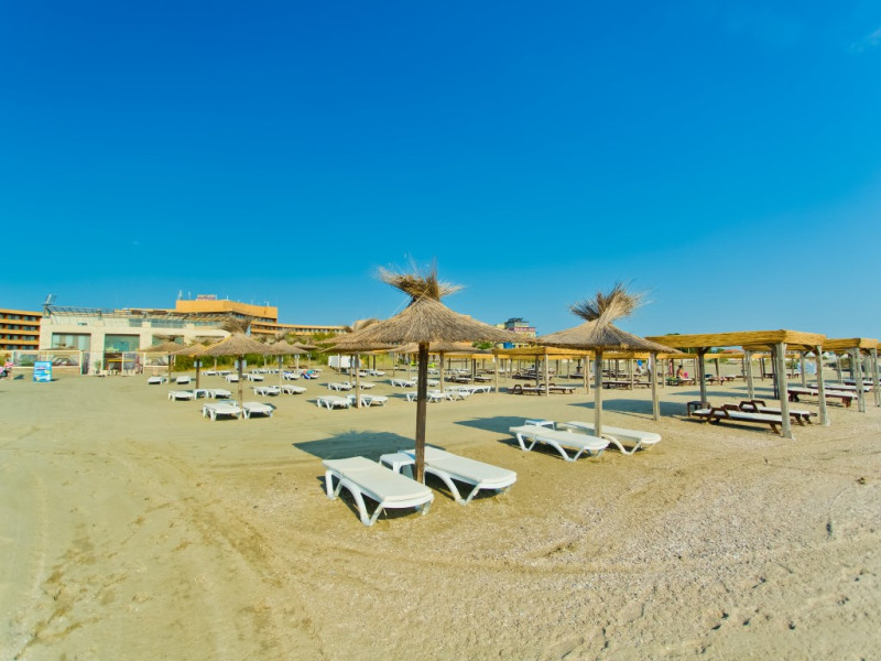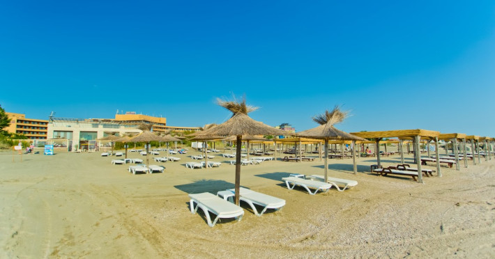 - plaja publica, cu nisip; umbrele de soare si sezlonguri – contra cost