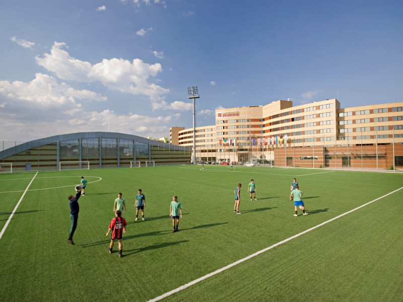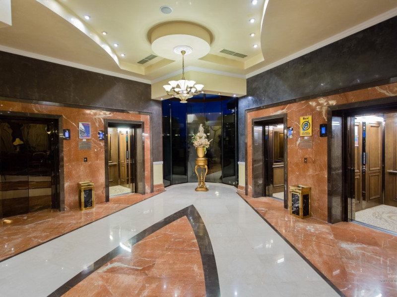 CAPACITATE: - cladire cu 7 etaje - 6 lifturi - 150 camere duble (max. 2+1/3 persoane, 25 m²) - 5 apartamente cu un dormitor (max. 2+2 persoane, 55 m²).