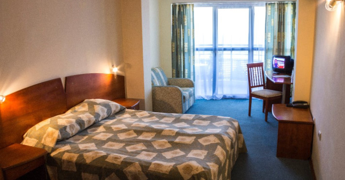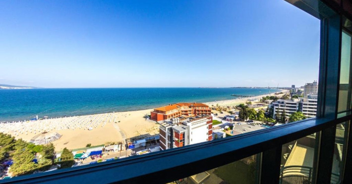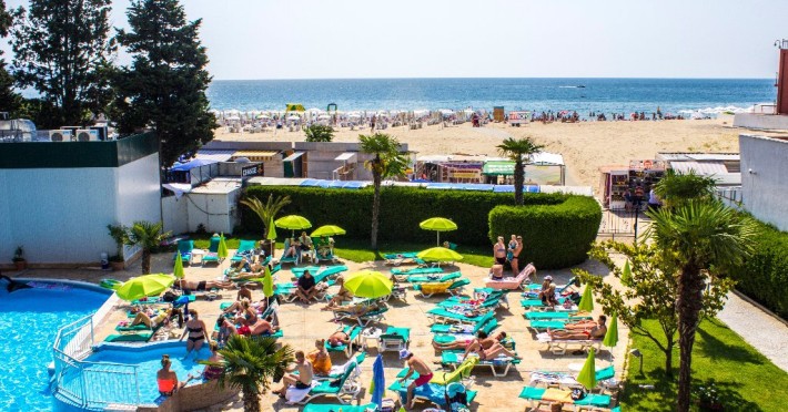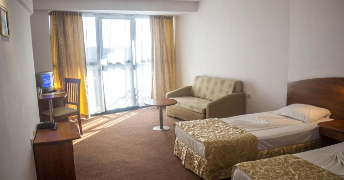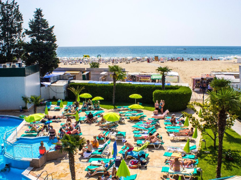 Grand Hotel Sunny Beach este un hotel de patru stele situat in cea mai mare statiune de vara din Bulgaria - Sunny Beach. Situat la doar 20 de metri de plaja, hotelul este situat in apropiere de baruri, restaurante, discoteci, zone de divertisment si magazine. Cel mai apropiat aeroport este la 30 km. Plaja: cu nisip, la 20 m de hotel. Fundul marii este plat cu acces lin. Plaja este castigatoare a premiului Blue Flag. Cazare: Hotelul Sunny Beach Grand este renovat complet 2024 si are 14 etaje cu doua lifturi si ofera 204 spatii complet cu aer conditionat - camere duble, studiouri si apartamente. In 2024 hotelul a renovat complet camerele si zonele comune. DBL 2+1/2+2: aprox- 20 m2. Camerele au un dormitor sau doua paturi de o persoana, pat suplimentar - fotoliu extensibil, baie cu dus, aer conditionat, mini frigider, ceainic, pahare, uscator de par, telefon, seif, TV prin satelit si terasa. Capacitatea maxima este de 3 adulti si 1 copil. STUDIO 2+1/2+2 SEA: aprox 25 m2. Este format din 2 paturi obisnuite si 2 paturi suplimentare - fotolii extensibile. Garsonierele sunt compuse dintr-o baie cu dus, aer conditionat, mini-frigider, ceainic, ochelari, uscator de par, telefon, seif, TV prin satelit si o terasa. Capacitatea maxima este de 3 adulti sau 2 adulti si 2 copii 1-BR APP 2+3/2+2: aprox 35 m2. Apartamentele au dormitor, canapea extensibila si fotoliu, living separat, baie cu dus, aer conditionat, mini frigider, ceainic, pahare, uscator de par, telefon, seif, TV prin satelit si terasa. Capacitatea maxima este de 4 adulti sau 3 adulti si 2 copii. *Este permisa gazduirea unui copil cu varsta de pana la 1,99 ani. peste gradul de ocupare maxim al camerei. Patutul de copii este oferit gratuit la cerere prealabila. Animalele de companie nu sunt permise. Hotelul nu dispune de camere adaptate pentru persoane cu dizabilitati. Despre hotel: Are un hol cu receptie, o camera pentru copii, un lobby bar, un restaurant principal, o piscina exterioara cu bar, salon de infrumusetare, un magazin, schimb valutar, inchirieri auto. Hotelul are o piscina in aer liber cu sezlonguri si umbrele de soare gratuite. Sport si divertisment: piscina in aer liber, sezlonguri si umbrele langa piscina, activitati sportive de divertisment Parcare: Contra cost - 25 BGN/zi, nepazita. Hotelul are un numar foarte limitat de locuri de parcare proprii, iar oaspetii folosesc o parcare cu plata in apropiere. Hotelul isi rezerva dreptul de a modifica pretul parcarii in orice moment.