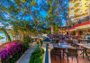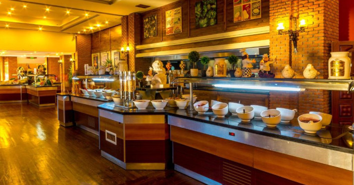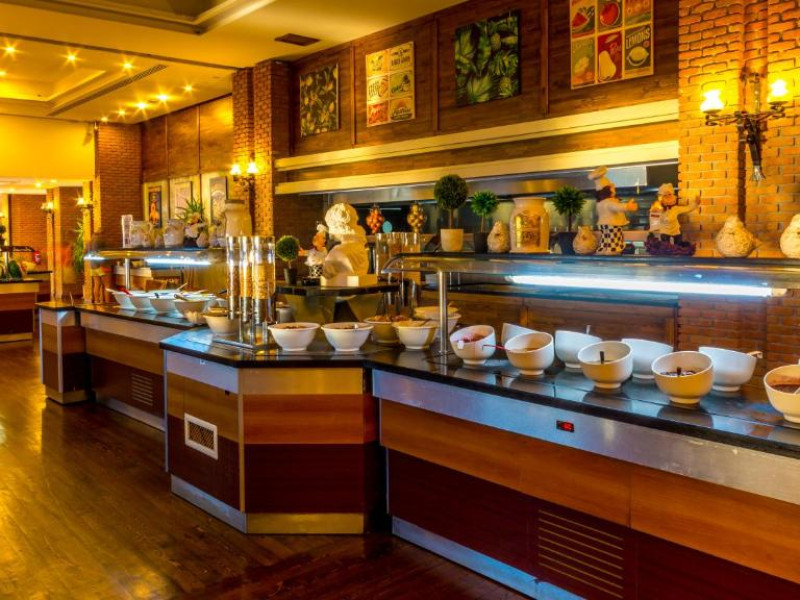 Oaspeții au la dispoziție o gamă largă de restaurante și cafenele pentru a lua masa in aer liber langă Marea Mediterană sau in sala elegantă de luat masa. Există 6 baruri, inclusiv barul din hol, care are program nonstop.