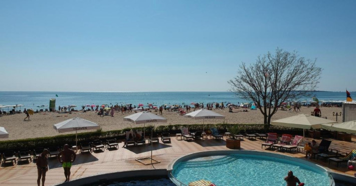 Situat chiar pe plaja, Hotelul Heaven se gaseste la aproximativ 400 m de centrul orasului Sunny Beach. St.Vlas este la 3 km. distanta, Nessebar- 6 km. Facilitati Cladirea hotelului are 5 etaje, 2 lifturi. In total 45 de unitati de lux (camere si apartamente), dintre care majoritatea cu vedere la mare. Renovat complet in 2023. Receptie cu seif /gratuit/, Wi-Fi de mare viteza gratuit in tot complexul, restaurant, lobby bar, bar la piscina, piscina exterioara cu sezlonguri si umbrele de soare, fier de calcat si jocuri de societate de divertisment /la receptie la cerere /, biciclete de inchiriat. Cazare Check-in: ora 14:00 Check out: ora 11:00 Double room - 20 mp (min/max.2+0), pat matrimonial, balcon mobilat, aer conditionat individual, TV SAT, telefon, Wi-Fi in camera, uscator de par, prosoape, baie cu dus si produse cosmetice. Doar la parter. Double room plus - 30 mp (min.2+0/max.2+1) pat dublu, canapea fotoliu, balcon mobilat, aer conditionat individual, TV SAT, telefon, Wi-Fi in camera, uscator de par, prosoape, baie cu dus si produse cosmetice. Family room- 55 mp (max.4+1) este formata din 2 dormitoare, 4 paturi obisnuite si 1 canapea, balcon mobilat, aer conditionat individual, uscator de haine, TV SAT, telefon, Wi-Fi in camera, uscator de par, prosoape , baie cu dus si produse cosmetice. One bedroom apartment - 70 mp (max.2+2/3+1) compus din living si dormitor, pat matrimonial sau 2 paturi separate, o canapea extensibila, balcon mobilat, chicineta, aspirator, cuptor, uscator de rufe, telefon , frigider, acces internet, baie cu dus, uscator de par, prosoape. In toate unitatile - terasa, aer conditionat, TV LED, baie cu dus si produse cosmetice. Two bedroom apartment - 180 mp, (max.4+2/5+1) compus din living si 2 dormitoare,2 paturi duble sau 4 paturi separate, o canapea extensibila, balcon mobilat, chicineta, aspirator, cuptor, uscator de rufe, telefon, frigider, acces internet, baie cu cada sau dus, uscator de par, prosoape. Three bedroom apartment- 300 mp, (max.6+2/7+1) este compus din living si 3 dormitoare, 3 paturi duble sau 6 paturi separate, o canapea extensibila, balcon mobilat, chicineta, aspirator, cuptor, uscator de rufe, telefon, frigider, acces internet, baie cu cada sau dus, uscator de par, prosoape. Toate unitatile au: AC, TV LED, telefon, Wi-Fi gratuit si seif, mini frigider, baie cu dus, uscator de par, prosoape si produse cosmetice, balcon cu masa si scaune. Nu exista camere potrivite pentru persoane cu dizabilitati. Copii: baby cot (gratuit la cerere), piscina exterioara cu sectiune pentru copii. Sport si divertisment Gratuit: piscina exterioara cu sectiune pentru copii, sezlonguri si umbrele de soare langa piscina si pe plaja (in functie de disponibilitate), Wi-Fi Animalele de companie sunt acceptate cu greutatea de pana la 5 kg, la cerere si dupa confirmarea hotelului. Parcarea este disponibila gratuit, nepazita, locuri limitate, la cerere Toate taxele platite la nivel local pot fi modificate la discretia hotelului. Gratuit: Sezlonguri si umbrele gratuite la plaja (in limita disponibilului).