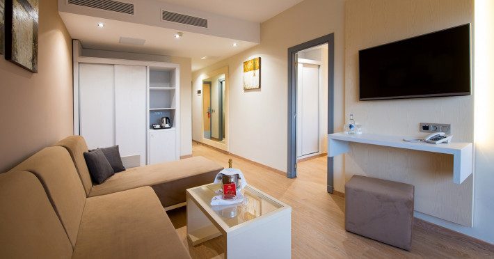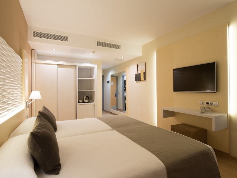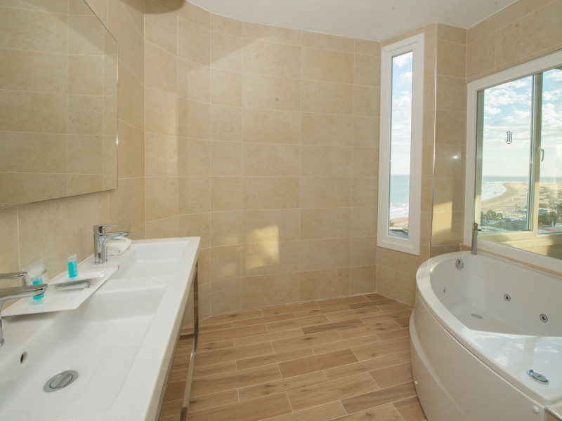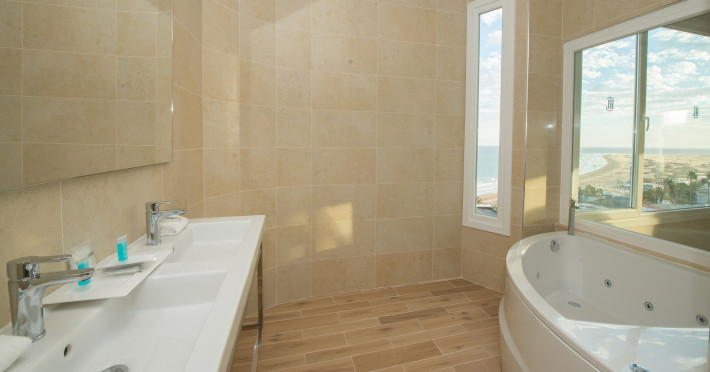 The apart hotel Suitehotel Playa del Ingles (Adults Only) is located in the vicinity of a beach. The city centre is also just a few steps away. In the vicinity a golf course provides entertainment for holidaymakers. The hotel is equipped with a 24h reception, Wi-Fi as well as parking spaces. In the outdoor area of the property you will find a garden as well as a heated pool. You can store your luggage in the hotel's storage room. The rooms are cleaned. If you want to explore the holiday region, you can use the car rental service close to the hotel. Due to its barrier-free facilities , such as barrier-free entrances, the hotel is also suitable for wheelchair users. Catering Breakfast is offered from the buffet. Lunch and dinner are also served from the buffet. Sports & Leisure A minigolf course at the hotel offers fun for the family during the most beautiful time of the year. At the hotel grounds there is also the possibility to play billiards. Also table tennis is offered at the hotel. A tennis court can also be used by hotel guests.