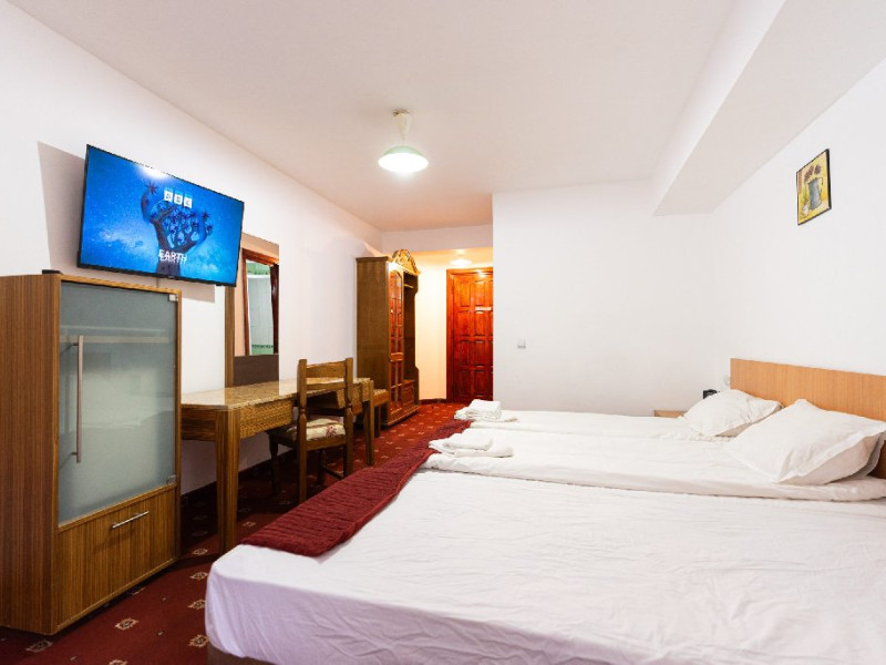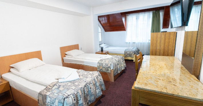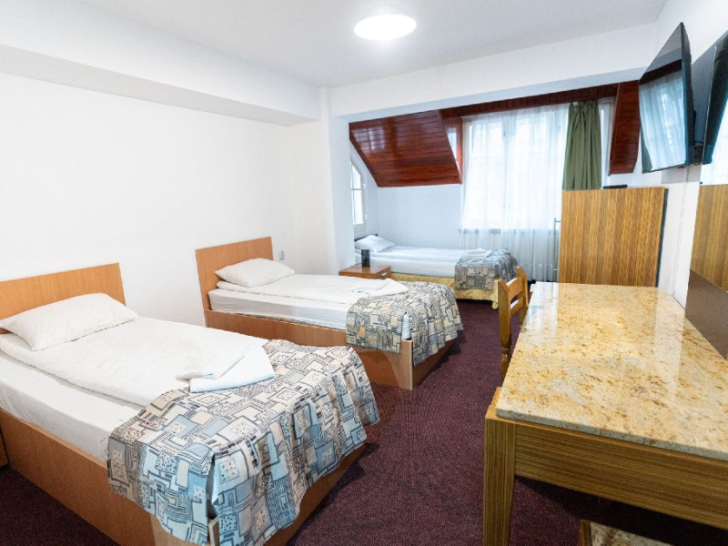 INFORMATII GENERALE In statiunea Predeal, departe de agitatia traficului de pe drumul national, intr-un cartier linistit si cochet de vacanta, se remarca un hostel impunator si elegant, Hostel Mountain Breeze. DESCRIERE UNITATE DE CAZARE Cu o arhitectura inspirata de peisajul montan si o armonie perfecta alb-negru, Hostel Mountain Breeze este apreciat pentru eleganta si rafinament. Beneficiind de o locatie privilegiata, aici se dezvaluie panorame impresionante ale statiunii si ale peisajului montan. FACILITATI UNITATE Unitatea turistica ofera o gama diversificata de servicii, inclusiv cazare, restaurant, bar, terasa, teren de sport, parcare. DESCRIERE CAMERE Fiecare camera este dotata cu facilitati moderne, inclusiv Wi-Fi gratuit, TV cu ecran plat si baie proprie. LOCALIZARE Hostel Mountain Breeze este situat in statiunea Predeal, la aproximativ 2 minute de Gara Predeal. ATRACTII TURISTICE Ascensiuni montane (Vf. Piatra Mare 1.843 m), Masivul Postavaru, Muntii Bucegi cu Vf. Omu (2.505 m), cascada Tamina, Pestera de Gheata; obiective istorice din Brasov, Sinaia, Rasnov, Castelul Bran, Castelul Pelis si Pelisor, Castelul Cantacuzino, Muzeul Trenurilor(Sinaia). POLITICI Animalele de companie nu sunt permise. SERVICII DE MASA Se acorda in restaurantul hotelului. FACILITATI COPII Copiii se pot bucura de activitati pe terenul de sport.