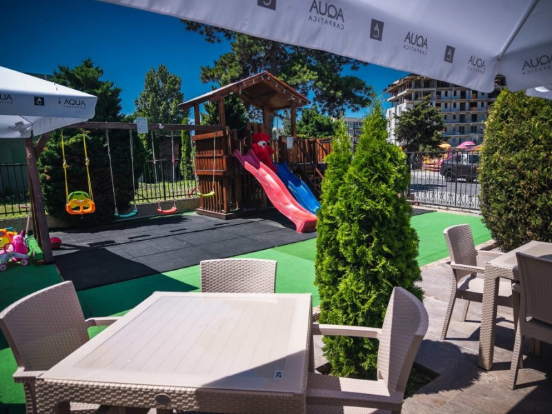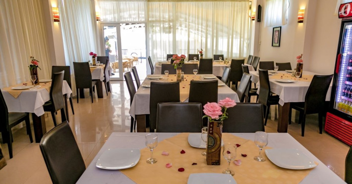LOCALIZARE Hotelul Adria are un amplasament turistic deosebit, in centrul statiunii Saturn, in imediata apropiere a Marii Negre, la aroximativ 2 minute de plaja (mers pe jos, numai pe alee, fara a fi necesara traversarea drumurilor publice). SERVICII MASA Se asigura in restaurantul hotelului, in sistem masa in cont/card client. cu meniu a la carte.