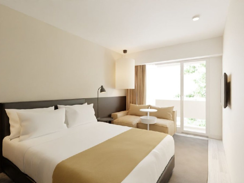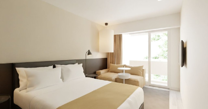 Camere Duble cu balcon si Vedere la Mare: suprafata de 19 mp, situate la etajele superioare, dispun de pat dublu (dimensiune 180 cm) si canapea extensibila (dimensiune 170x 130 cm). Capacitate maxima 2 adulti si 2 copii intre 0- 17 ani.