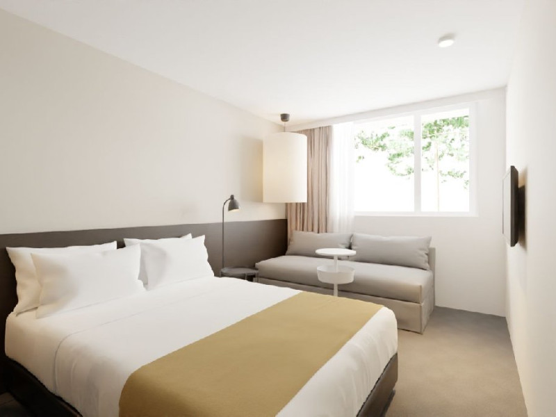 Camere Duble cu balcon si Vedere la Gradina: suprafata de 19 mp, situate la etaj, dispun de pat matrimonial (dimensiune 145cm)si canapea extensibila (dimensiune 170x 130 cm). Capacitate maxima 2 adulti si 2 copii intre 0- 15 ani.