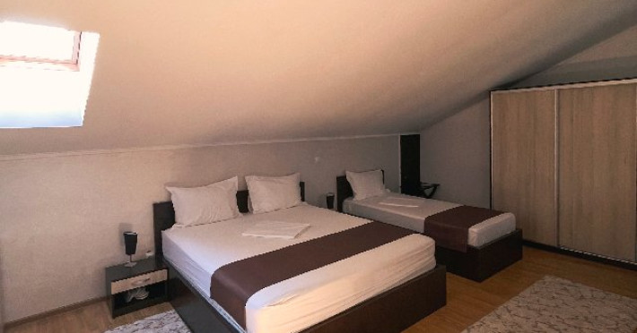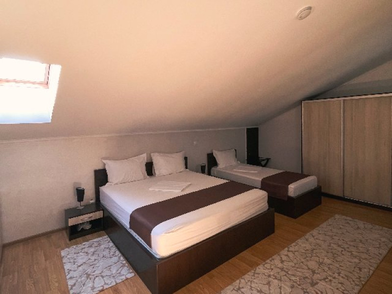 INFORMATII GENERALE Hotel Delta Est se afla in Sulina, in apropiere de faleza pietonala si de mijloacele de transport in comun catre plaja. DESCRIERE UNITATE DE CAZARE Delta Est Hotel Sulina te asteapta sa descoperi frumusetile naturale ale Deltei Dunarii. Indiferent daca vii in interes de afaceri sau pentru a cunoaste traditiile si modul de viata al localnicilor din satele din imprejurimi, la Delta Est Hotel vei fi intampinat cu servicii de calitate si o cazare confortabila. FACILITATI UNITATE Hotelul ofera un restaurant cu terasa, cu posibilitatea de organizare evenimente, internet Wi-Fi si oportunitatea de a explora Delta Dunarii prin excursii cu barca sau drumetii. DESCRIERE CAMERE Camerele duble dispun de un pat matrimonial sau doua paturi twin si ofera balcon cu vedere spre oras. Camera tripla este situata la mansarda si dispune de un pat matrimonial si un pat single. Apartamentul cu un dormitor si living cu canapea extensibila se afla la mansarda si ofera vedere spre Dunare din dormitor. Apartamentul cu doua dormitoare este spatios si ofera cate un pat matrimonial in fiecare dormitor precum si un balcon cu vedere spre oras. Toate tipurile de camere dispun de baie proprie cu uscator de par, TV, birou, frigider. LOCALIZARE Hotel Delta Est se afla in Sulina, in apropiere de faleza pietonala si de mijloacele de transport in comun catre plaja. Accesul la hotel se face exclusiv cu barca. ATRACTII TURISTICE Plaja Sulina, Farul Observator, Catedrala Sf. Alexandru si Sf. Nicolae, Expozitia Sulina Veche, excursii satul Letea. POLITICI Nu sunt acceptate animalele de companie. SERVICII DE MASA Mesele se servesc in restaurantul propriu. FACILITATI COPII Copiii mai mari de 10 ani se pot caza in camera tripla sau apartament. FACILITATI EVENIMENTE Se pot organiza evenimente festive in restaurant.