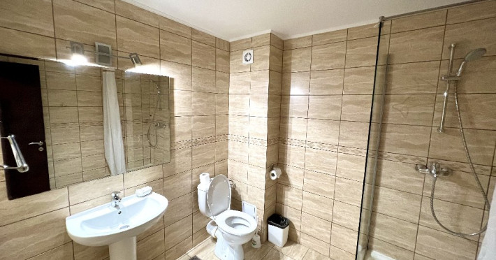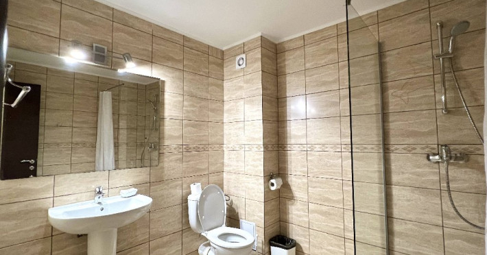 Apartamentul Premium: 2 dormitoare cu pat matrimonial, doua bai si living cu canapea extensibila (de 2 locuri). Camera de aproximativ 50 mp, aer conditionat, TV, frigider, wifi, baie proprie, terasa cu vedere la mare, cu scaune si masa.