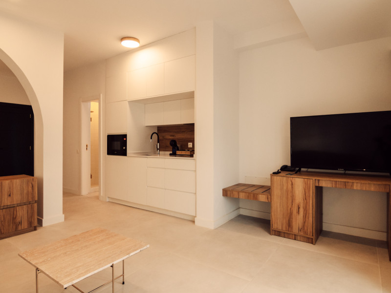 The air-conditioned, GPS-verified aparthotel Hotel Estefania Boutique Suites (Adults Only) is equipped with a 24h reception (check-in is possible around the clock), a lobby bar, Wi-Fi, internet access, a lift, cash machine, a first aid kit, parking spaces as well as a TV lounge with satellite TV. In the outdoor area of the property you will find a garden as well as a heated pool (open all year), where sun loungers, sun umbrellas and pool towels are available for free. For children there is also a children's pool with a non-swimming area. Furthermore, you can relax outdoors on the sun terrace. You can store your valuables in the safe, and your luggage in the hotel`s storage room. In addition, the hotel Hotel Estefania Boutique Suites (Adults Only) is video-monitored 24h a day. There is also a laundry and ironing service. Ironing equipment can also be borrowed at the hotel. For your comfort there is a concierge service. If necessary, you can contact the medical centre at any time. The energy supply is 220 Volts. If you want to explore the holiday region, you can use the motorbike rental service close to the hotel. At the hotel reception, tickets are offered for excursions in the area. For guests on their honeymoon, the hotel has special offers such as special honeymoon packages or a present in the room. In your hotel, a lot of focus is placed on sustainability. This includes the provision of soap, shampoo and lotion dispensers, organic food and ecological meals, a central room air-conditioning and environmentally-friendly cleaning. The hotel requires that all guests pay a deposit upon arrival. Euro/Master Card and Visa are accepted as means of payment.