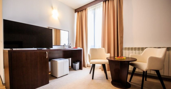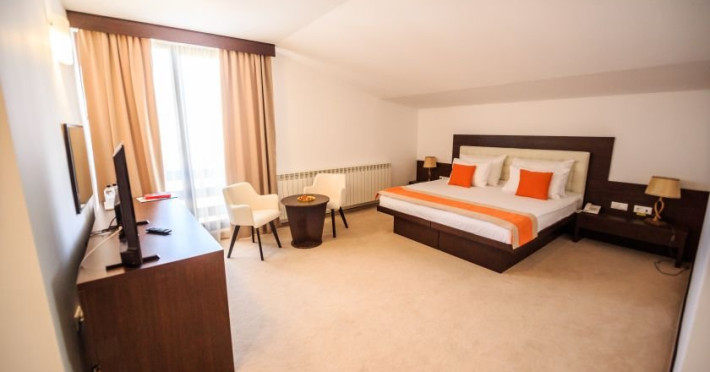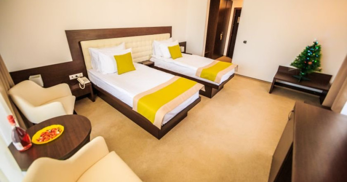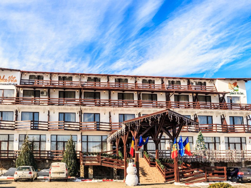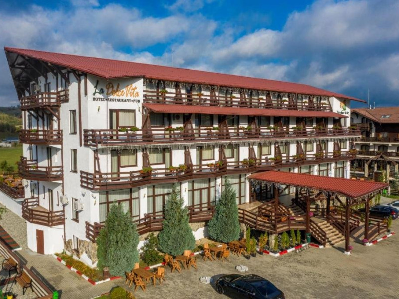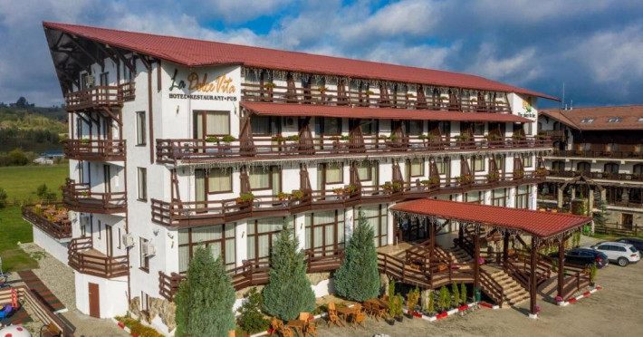 INFORMATII GENERALE Hotelul La Dolce Vita este situat la doar 3 km de Castelul Bran si la 7 km de zona de schi Zanoaga. DESCRIERE UNITATE DE CAZARE Hotelul reprezinta destinatia perfecta atat pentru agrement, cat si pentru afaceri, combinand facilitatile moderne cu spatiile generoase si ospitalitatea specifica zonei. FACILITATI UNITATE Locatia dispune de parcare, restaurant, terasa in aer liber cu vedere la munte, bar, un loc de joaca exterior si un club pentru copiii de toate varstele (tenis de masa, biliard, fotbal de masa, air hockey, darts, rummy, table, sah, dame). DESCRIERE CAMERE Hotelul cuprinde spatii de cazare amenajate modern, toate dispunand de terasa cu mobilier, TV LCD/LED cu diagonala de 108 cm, baie cu cada sau cabina de dus, uscator de par, cosmetice hoteliere. Camera dubla matrimoniala/twin are o suprafata de aproximativ 20 mp, pat matrimonial (180/190 cm) sau doua paturi individuale ( 80/190 cm), baie cu cabina de dus sau cada. Junior Suite dispune de un pat matrimonial si o canapea extensibila, avand o suprafata de 30 mp sau 60 mp. LOCALIZARE Hotelul La Dolce Vita este situat la doar 3 km de Castelul Bran si la 7 km de zona de schi Zanoaga. ATRACTII TURISTICE Wolf Park Adventure (5 km), Cetatea Rasnov (10 km), Dino Park (10 km), Pestera Valea Cetatii (11 km), Parcul de aventura Cheile Gradistei (11 km), Telecabina Postavaru, Kanzel si Partia Subteleferic (15 km). SERVICII DE MASA Mesele se servesc in restaurantul propriu cu o capacitate de 120 locuri.POLITICI Nu sunt permise animalele de companie. FACILITATI COPII Club pentru copii: tenis de masa, biliard, fotbal de masa, air hockey, darts, rummy, table, sah, dame.