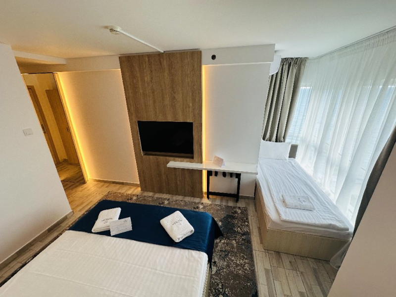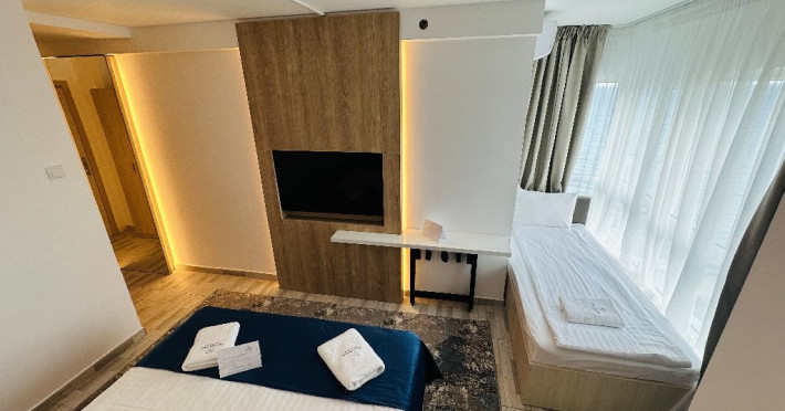 SERVICII MASA ALL INCLUSIVE STANDARD 3 mese (mic dejun pranz, cina), meniu diversificat in sistem open Buffet pregatit de Chef Alexandru Maximilian. In timpul meselor se servesc bauturi racoritoare, apa plata si carbogazoasa precum si bere/ vin/ bauturi alcoolice la pranz si cina; Bauturi non alcoolice, cafea si bauturi alcoolice (bere,vin) pe toata durata zilei la pool bar; Acces la locul de joaca exterior din cadrul hotelului (de care apartine clientul) / locul de joaca interior (diverse activitati de divertisment, mese de biliard, fussball, simulatoare auto etc); Acces la programele de divertisment pentru copii conform orarului afisat in receptie; Internet wi-fi gratuit; Minibar in camera alimentat o data pe zi; Acces la consumatie Beach Bar plaja (bauturi non alcoolice, cafea si bauturi alcoolice (bere,vin)) 2 Sezlonguri per camera dubla la piscina hotelului (de care apartine clientul) sau plaja privata (plaja largita prin procesul de innisipare in anul 2024) in zona special alocata oaspetilor Muntenia Hotel;Orice apartament beneficiaza de 3 sezlonguri la plaja sau piscina. In cadrul serviciilor turistice nu sunt incluse locurile de parcare pentru autoturismele turistilor si nici paza acestora. Parcarea autoturismelor se poate face pe aleile publice. In momentul cazarii va fi perceputa o garantie de 500 lei/camera, care se returneaza in ziua de check-out. FACILITATI COPII In camera dubla se recomanda cazarea a maxim 2 adulti si 1 copil (fara pat suplimentar).