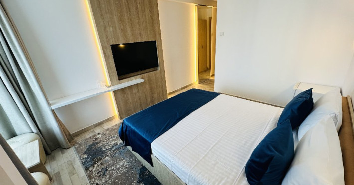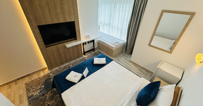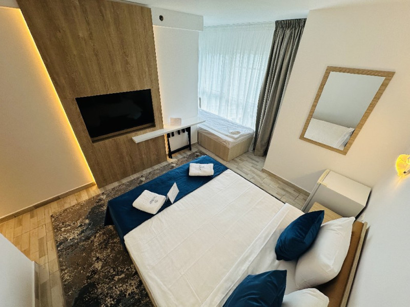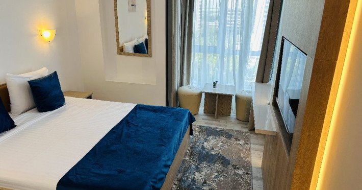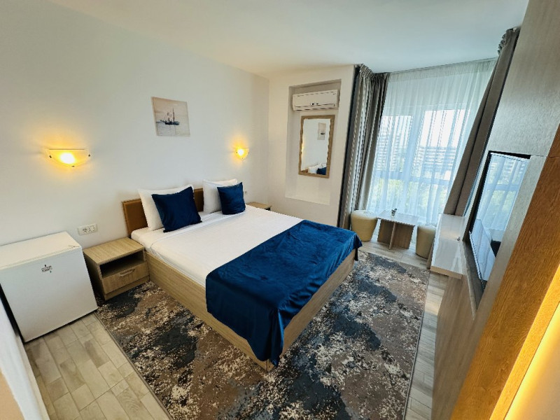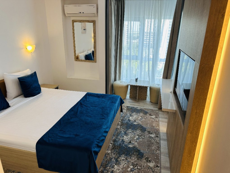 DESCRIERE CAMERE Hotelul este dispus pe 13 etaje si are o capacitate de 210 de unitati de cazare modernizate - camere duble, camere triple si apartamente - ce ofera vederi spectaculoase la Marea Neagra. Toate camerele au fost modernizate recent si sunt echipate cu TV modern, minibar, wi-fi, aer conditionat si baie cu articole de igiena si accesorii gratuite.
