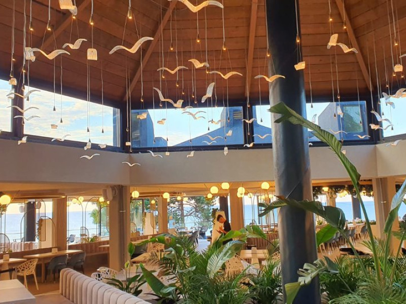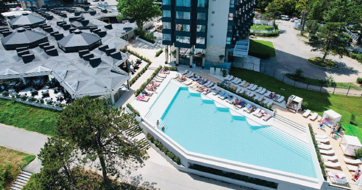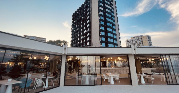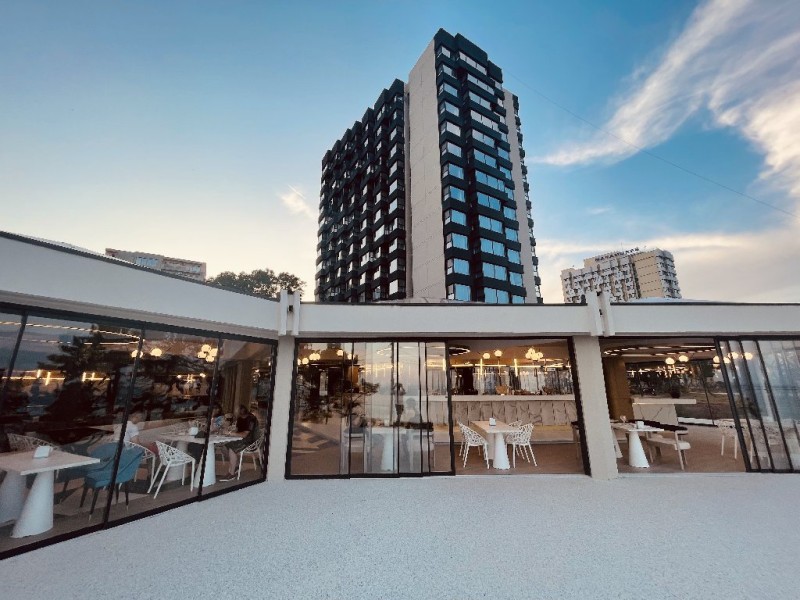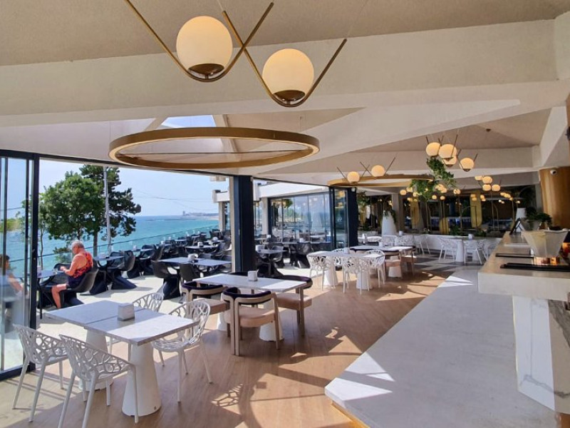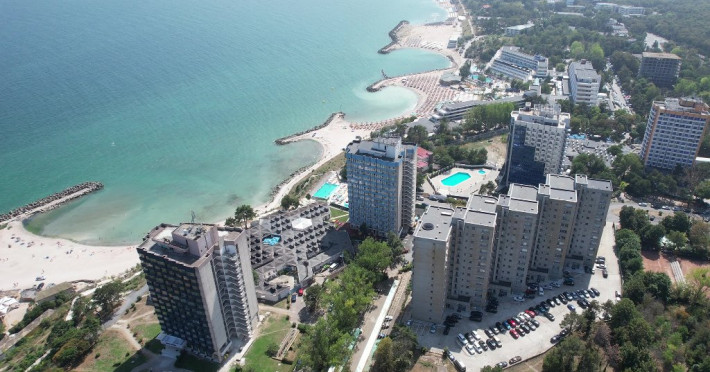FACILITATI UNITATE Zambetele si serviciile de calitate cu care v-am obisnuit in unitatile noastre se vor regasi si in noul hotel ce beneficiaza de peste 200 de camere, suite si apartamente racoroase si confortabile, modernizate intr-un stil contemporan, la standarde de 4 stele si cu acces la o gama variata de servicii precum: plaja privata situata fix in fata hotelului, amenajata si largita incepand cu anul 2025 sa deserveasca clientii hotelului; un superb restaurant cu vedere panoramica amplasat desupra falezei cu seri tematice si bucate alese, atent pregatite de o echipa cu renume; Lobby cu open bar de bauturi deschis zilnic, terase, locuri de joaca exterioare pentru copii, 2 piscine exterioare - una dedicata copiilor si una pentru adulti si ample spatii deschise in dorinta de a creiona o experienta de vis incununata de frumusetea peisajului ce ne confera un mare avantaj.
