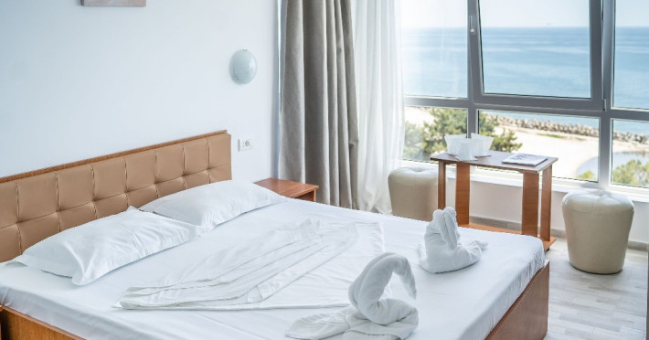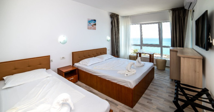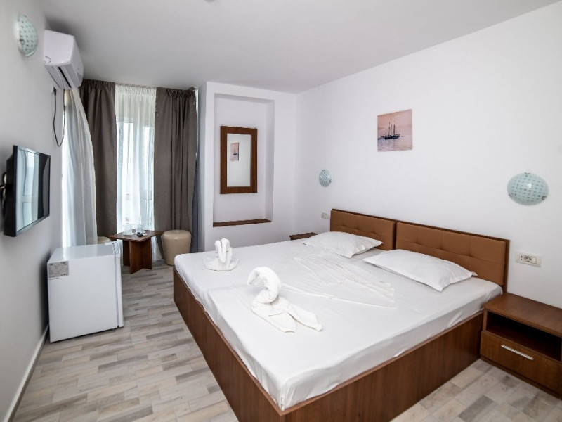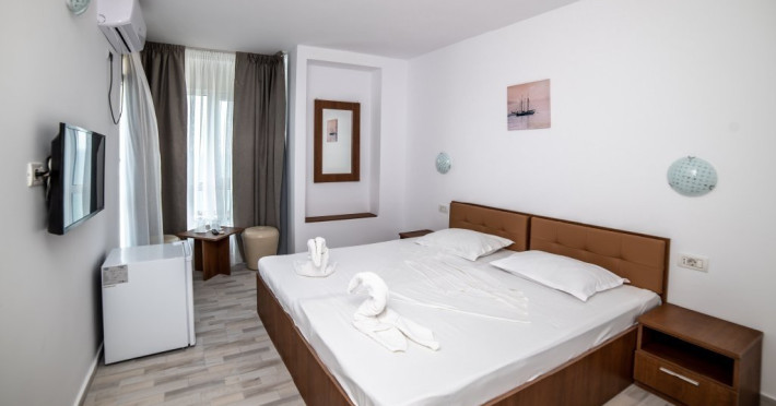 DESCRIERE CAMERE Dotari camere: aer conditionat, TV, minibar, baie cu dus, uscator de par, uscator de rufe, internet- wireless. Camere duble sunt cu 2 paturi sau cu pat matrimonial. Apartamentele sunt compuse din living si dormitor.
