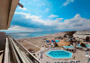 SERVICII MASA 1.CAZARE + MIC DEJUN: include micul dejun - se serveste incepand cu a doua zi de cazare si inclusiv in ziua plecarii. Bauturi incluse : apa, bauturi racoritoare la dozator, ceai, cafea. 2.CAZARE + DEMIPENSIUNE include micul dejun si masa de pranz - se serveste incepand cu a doua zi de cazare si inclusiv in ziua plecarii. Bauturi incluse : apa, bauturi racoritoare la dozator, ceai, cafea, bere draft, vin alb/rosu/rose la dozator. 3.CAZARE + PENSIUNE COMPLETA: include mic dejun, pranz si cina - in prima zi de cazare se serveste cina, incepand cu a doua zi de cazare se servesc toate mesele si in ziua plecarii se servesc doar micul dejun si pranzul. Bauturi incluse : apa, bauturi racoritoare la dozator, ceai, cafea, bere draft, vin alb/rosu/rose la dozator. 4.CAZARE + ALL INCLUSIVE :include mic dejun, pranz,gustari cina, bauturi alcoolice si nonalcoolice - in prima zi de cazare se serveste cina, incepand cu a doua zi de cazare se servesc toate mesele si in ziua plecarii se servesc doar micul dejun si pranzul. Gustarile de tip finger food (selectie limitata de produse dulci si sarate, conceput pentru servire rapida) sunt disponibile in intervalul orar 16:00-17:30. Bauturi incluse: bere draft, vin alb/rose/rosu la dozator, whisky, vodka, rom, gin, lichior, long drinks. *Selectia de bauturi alcoolice cuprinde cate doua sortimente din fiecare categorie, iar gama de long drinks include minimum cinci sortimente; in functie de sezon si disponibilitate. 5.CAZARE + ULTRA ALL INCLUSIVE (disponibil in perioada 19.06.2026-31.08.2026) : include mic dejun, pranz, cina, gustari, bauturi alcoolice si nonalcoolice - in prima zi de cazare se serveste cina, incepand cu a doua zi de cazare se servesc toate mesele si in ziua plecarii se servesc doar micul dejun si pranzul. Gustarile de tip finger food (selectie limitata de produse dulci si sarate, conceput pentru servire rapida) sunt disponibile in intervalul orar 10:00-12:00. Bauturi incluse: bere draft, vin alb/rose/rosu la dozator, whisky, vodka, rom, gin, lichior, long drinks. *Selectia de bauturi alcoolice cuprinde cate doua sortimente din fiecare categorie, iar gama de long drinks include minimum cinci sortimente; in functie de sezon si disponibilitate. Bauturile incluse pentru tipurile de pachet 1, 2 si 3 sunt disponibile doar in restaurant, in timpul servirii mesei. Pachetul de bauturi inclus in tipul de pachet ALL INCLUSIVE este disponibil in restaurant (in intervalul de servire al meselor principale), la barul all inclusive de pe plaja ( program 10:00 - 19:00 ) la barurile all inclusive de pe piscina (program 10:00 -19:00 ) si la barul de seara (program 20:30-23:00). Pachetul de bauturi inclus in tipul de pachet ULTRA ALL INCLUSIVE este disponibil in restaurantul de pe plaja ( program 08:00 - 22:00 ), la barul all inclusive de pe plaja (program 10:00 - 19:00 ) , la barurile all inclusive de pe piscina (program 10:00 -19:00 ) si la barul de seara(program 20:30-24:00). Pentru toate tipurile de pachet, exceptand ULTRA ALL INCLUSIVE, servirea meselor principale se face in regim buffet suedez, in intervalul 07:30 - 10:00 - mic dejun, 12:30 -15:00 - pranz si 19:00 - 22:00 - cina. Pentru tipul de pachet ULTRA ALL INCLUSIVE,micul dejun va fi servit in restaurantul Belvedere sau Panoramic in intervalul 7:30-10.00. Pranzul si cina vor fi servite intr-un restaurant distinct, situat pe plaja, servirea meselor principale se face in regim buffet suedez, in intervalul 12:30 - 18:30 - pranz si 19:00 - 22:00 - cina. Pentru accesul in cadrul restaurantului, este obligatorie purtarea la mana a bratarii. Lipsa bratarii primite la check-in, care atesta tipul de masa rezervat, poate duce la refuzul hotelului de a servi oaspetii. Este interzisa iesirea cu alimente sau bauturi din incinta restaurantului, chiar daca scopul este pastrarea acestora in camera. In prima zi de cazare se serveste cina, incepand cu a doua zi de cazare se servesc toate mesele si in ziua plecarii se servesc doar micul dejun si pranzul. Pranzul din ziua cazarii nu este inclus in pachet; acesta poate fi achizitionat contra cost, atat la receptia locatiei cat si la receptia restaurantului.Nu sunt incluse bauturile la: restaurantul de pe plaja ( exceptie pachetele ULTRA ALL INCLUSIVE ), barurile a la carte de pe piscina si plaja, lobby bar Panoramic si Belvedere sau restaurante a la carte din complex.