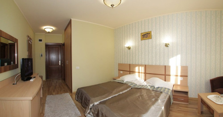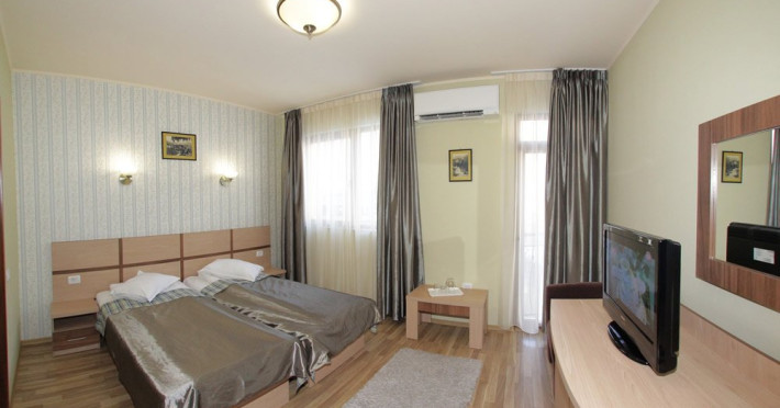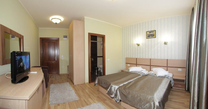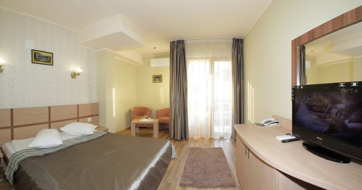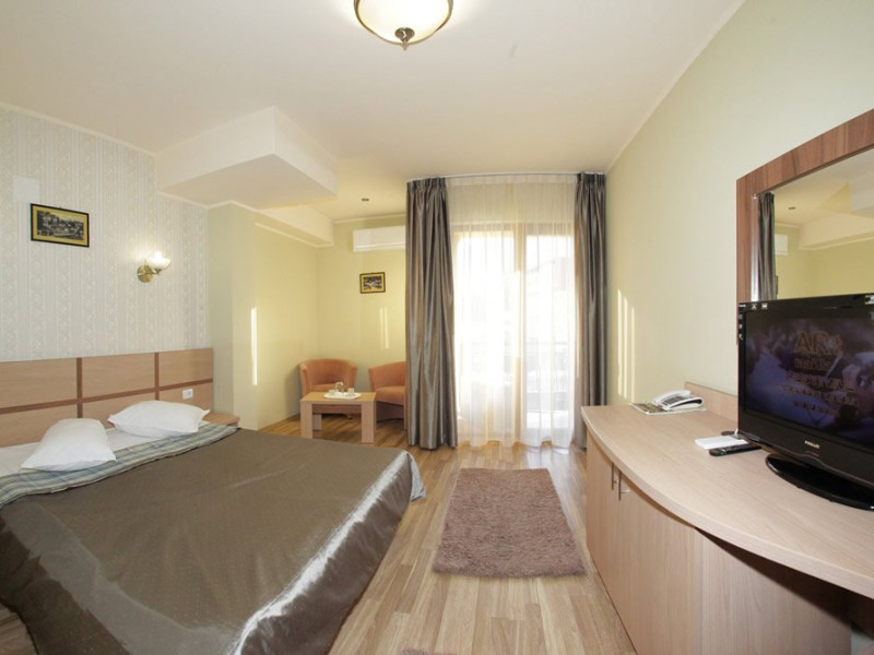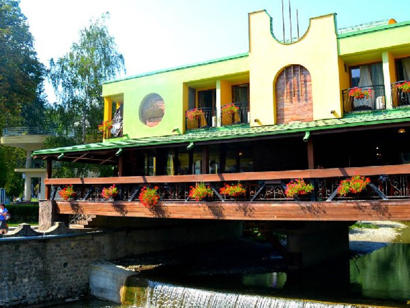INFORMATII GENERALE Hotel Stogu este amplasat in Baile Olanesti pe malul raului Olanesti avand in imediata apropiere Parcul Mihai Eminescu. Reprezinta o alegere potrivita pentru un sejur relaxant. DESCRIERE UNITATE DE CAZARE Camerele moderne, serviciile de masa si tratament contribuie la un sejur placut. FACILITATI UNITATE Hotelul dispune de restaurant si terasa, baza de tratament unde pune la dispozitie urmatoarele servicii de tratament: - curenti diadinamici; - curenti interferentiali; - curenti galvanizati; - magnetodiaflux; - ionizari; - ultrasunete; - unde scurte; - solux; - trabert; - impachetari calde; - masaj. DESCRIERE CAMERE Hotelul Stogu are in componenta sa camere duble si un apartament, toate avand dotarile impuse de cele trei stele, si anume: baie proprie, TV, internet, incalzire centrala, climatizare, minibar. LOCALIZARE Hotel Stogu este amplasat in Baile Olanesti pe malul raului Olanesti avand in imediata apropiere Parcul Mihai Eminescu ATRACTII TURISTICE Casa memoriala Anton Pann, Manastirea Frasinei, Parcul National Buila Vanturarita, Pestera Sfantului Grigorie Decapolitul, Rezervatia Muzeul Trovantilor, Rezervatia Radita - Manzu din Muntii Capatanii. POLITICI Pentru procedurile de tratament, turistii trebuie sa prezinte la hotel dovada de asigurat (adeverinta de la locul de munca sau cupon de pensie) si bilet de trimitere tip pentru servicii medicale in sistemul asigurarilor sociale de sanatate. In caz contrar, serviciile de tratament vor fi incasate la tarif pentru turistul neasigurat, iar acesta va fi obligat sa achite diferenta la receptie. Cura de apa se achita separat la receptie. SERVICII DE MASA Hotel Stogu are restaurant modern de 150 locuri si o terasa deasupra raului Olanesti cu o capacitate de 50 locuri. Bucataria restaurantului prepara pe langa meniurile traditionale/internationale si meniuri dietetice (5 tipuri de diete). Pe langa cele 3 mese servite in incinta restaurantului mai puteti savura si bauturi diverse in incinta barului de zi. Masa este sub forma de meniu fix (exista mai multe diete, in functie de recomandarea medicului specialist) sau sub forma de bonuri valorice (masa a la carte), unde valoarea de masa poate fi suplimentata la cererea turistilor. FACILITATI COPII In camerele duble se poate adauga maxim un pat suplimentar. FACILITATI EVENIMENTE In cadrul restaurantului se pot organiza evenimente festive.