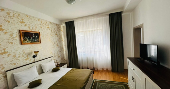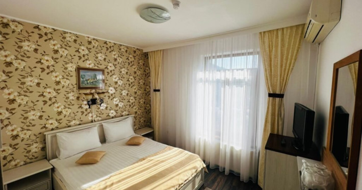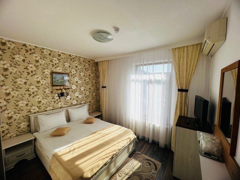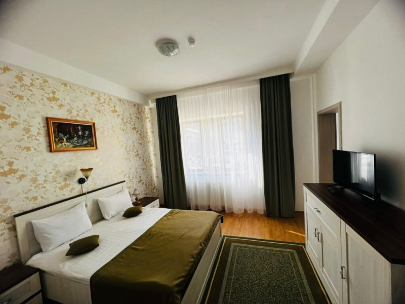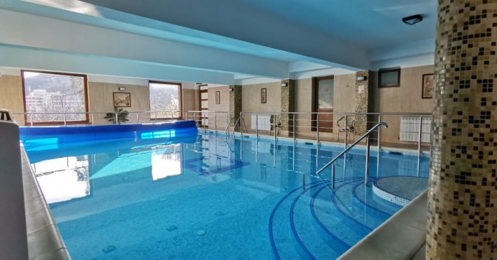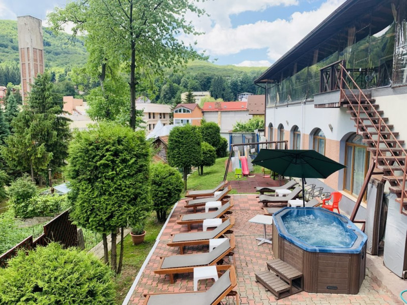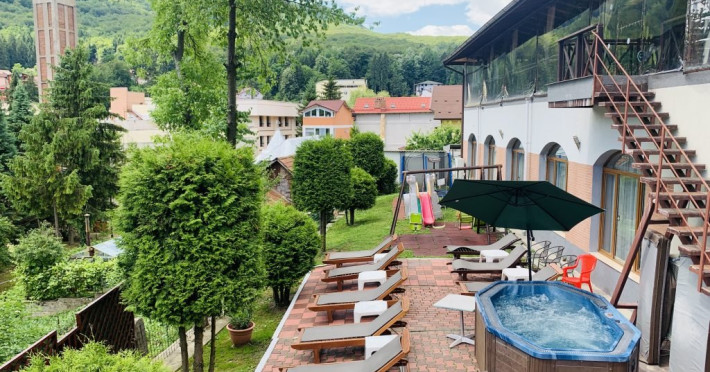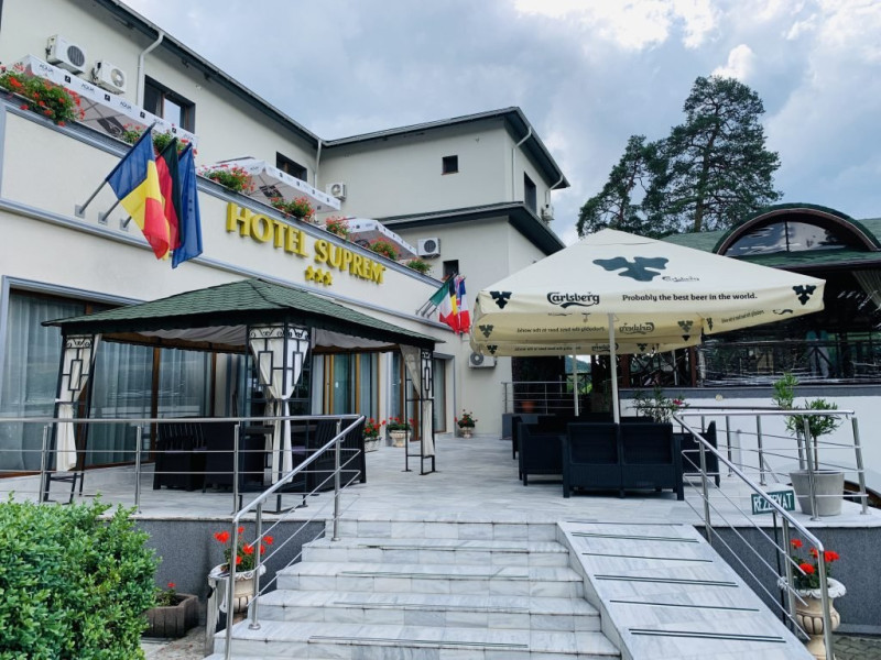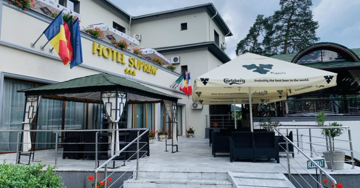INFORMATII GENERALE Hotel Suprem se afla in statiunea Baile Olanesti la aproximativ 250 m de parcul central. Atmosfera unica, serviciul atent si decorul primitor transforma fiecare vizita intr-un moment memorabil. DESCRIERE UNITATE DE CAZARE Cu o panorama ampla asupra dealurilor impadurite din vecinatate si in imediata apropiere a Bisericii lui Horea, hotelul Suprem pune la dispozitia turistilor spatii de cazare, masa si relaxare. FACILITATI UNITATE Hotel Suprem pune la dispozitia turistilor un restaurant cu terasa, centru SPA cu piscina acoperita, sauna mixta (umeda si uscata), salina pentru cai respiratorii, pat de masaj cu pietre de jad, jacuzzi in aer liber, zona de plaja, sala de refacere si intretinere corporala, parcare. DESCRIERE CAMERE Camerele standard au o suprafata cuprinsa intre 11-14 mp. Sunt dotate cu pat matrimonial sau doua paturi apropiate si nu au balcon. Camerele standard plus au o suprafata cuprinsa intre 14-19 mp. Sunt dotate cu pat matrimonial, iar doua dintre aceste camere au balcon. Camerele triple dispun de pat matrimonial si canapea extensibila. Doua camere triple au terasa. Apartamentele sunt compuse din living dotat cu canapea extensibila si un dormitor cu pat matrimonial. Doua apartamente au terasa/ balcon. Toate camerele pun la dispozitie: aer conditionat, racitor, cablu TV, televizor led, grup sanitar, uscator de par, internet wireless. LOCALIZARE Hotelul este situat aproape de centrul statiunii Baile Olanesti, la aproximativ 250 m de parcul central. ATRACTII TURISTICE Biserica Nicola Ursu - Horia, Parcul Central si Aleea Izvoarelor, Biserica Sfantul Pantelimon, Lacul cu Nuferi, satul Comanca, Satul Tisa si Schitul Bradu. POLITICI Se accepta animale de companie contra cost. SERVICII DE MASA Restaurantul hotelului Suprem o capacitate de 90 de locuri si este completat de un separeu de 20 de locuri. Se afla la demisolul hotelului. Barul de zi afla in imediata vecinatate a receptiei si are o capacitate de 35 locuri, din care 20 locuri pe terasa. FACILITATI COPII Copiii mai mari de 9 ani se pot caza in camere triple sau apartamente. FACILITATI EVENIMENTE Hotel Suprem dispune de o sala de evenimente cu o capacitate de 180 locuri. Instalatia de sonorizare a restaurantului este potrivita pentru orice tip de eveniment. La petreceri se amenajeaza un ring de dans cu sisteme de lumini dinamice.