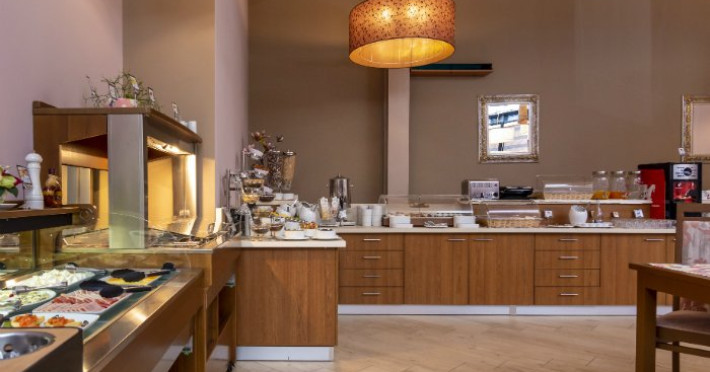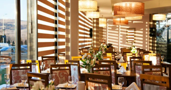 SERVICII DE MASA Micul dejun este inclus in tariful cazarii si este servit sub forma de bufet. Cina are loc intre orele 17:00 si 22:00, iar preparatele se aleg din meniul a la carte, disponibil si in camere prin scanarea unui cod QR.