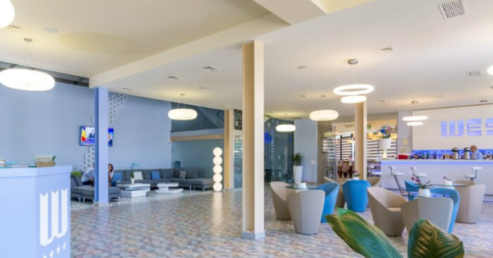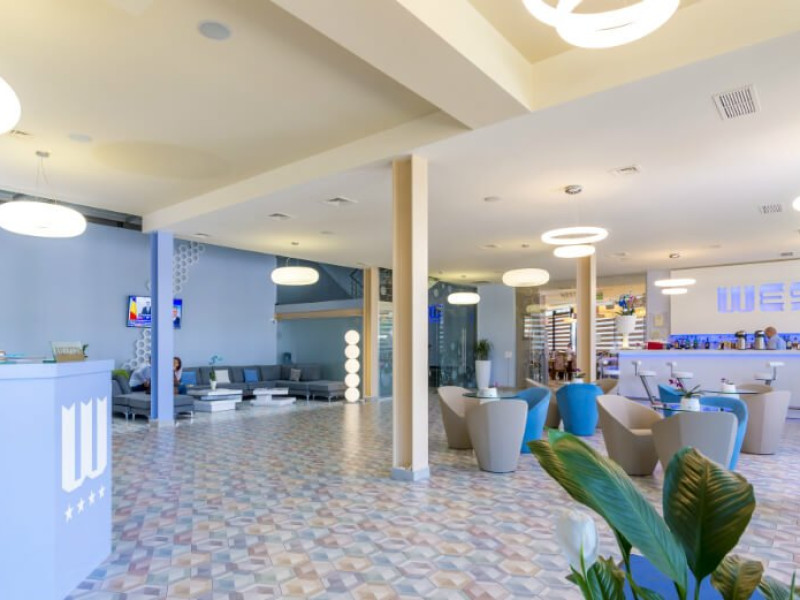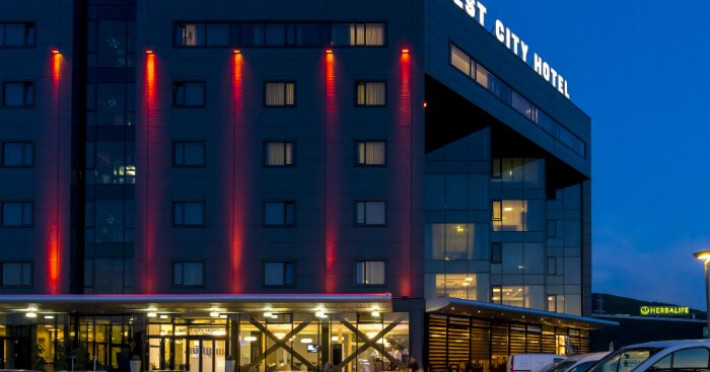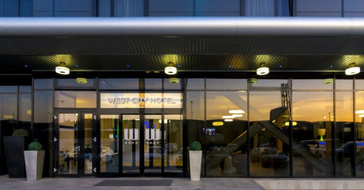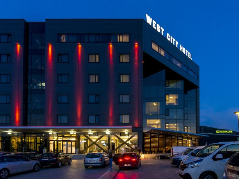 DESCRIERE UNITATE DE CAZARE O bijuterie arhitecturala contemporana, West City Hotel te va surprinde in primul rand datorita contrastului dintre exteriorul sobru si interiorul plin de lumina si culoare. Hotelul dispune de 101 camere, 4 sali de conferinta, 1 restaurant a la carte si parcare proprie supravegheata.