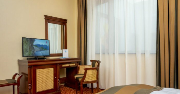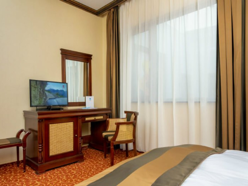 DESCRIERE CAMERE Toate camerele sunt de nefumatori. Fiecare camera este dotata cu: birou si TV LCD, mini frigider, dus si produse cosmetice de calitate, halate si papuci, uscator de par. Accesul in camere se face pe baza de card sau telefon.