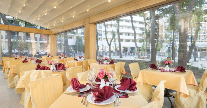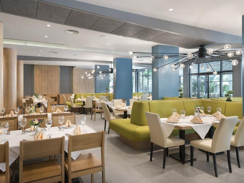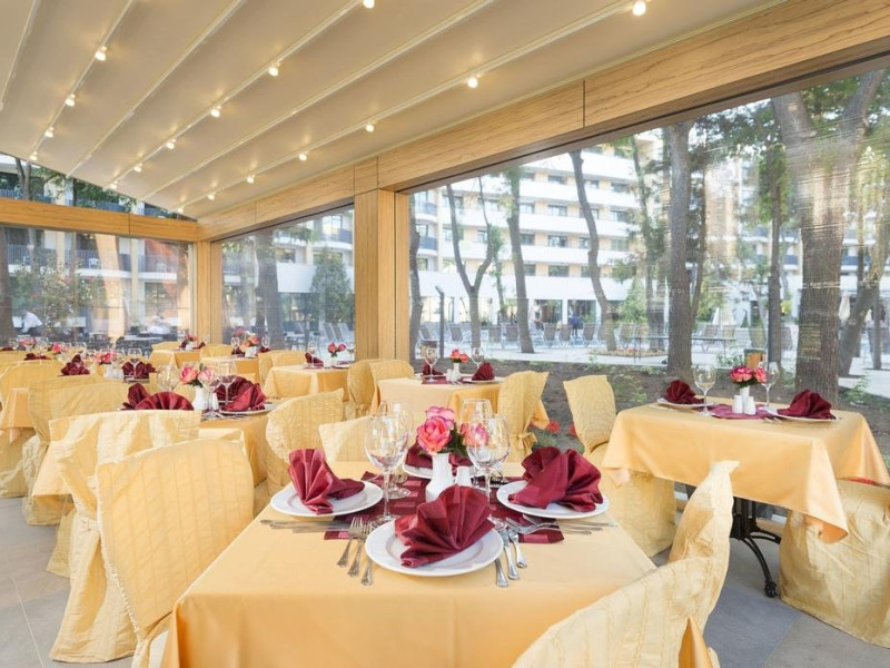 - Mic dejun in restaurantul principal tip bufet - 07:30 - 10:00 O varietate de preparate calde si reci, specialitati din oua, o varietate de produse lactate, carnati si branzeturi, o selectie de produse de panificatie, cereale, fructe. - Mic dejun tip bufet tarziu in restaurantul Snack: 11:00 - 12:00 (iunie pana la mijlocul lunii septembrie) - Pranz in restaurantul principal tip bufet: 12:00 - 14:00 bufet - selectie de salate si supe proaspete, mare varietate de mancaruri bulgaresti si internationale, mancaruri vegetariene si din carne, paste, selectie de produse de panificatie, bufet dulci cu o varietate de deserturi . - Pranz tip bufet tarziu in restaurantul cu gustari 12:00 - 15:00 (iunie pana la mijlocul lunii septembrie) - Gustare de dupa-amiaza: 15:00-17:00 produse de patiserie, fructe, inghetata - Cina in restaurantul principal tip bufet: 18:00 - 21:00 - Selectie de salate si supe proaspete, mare varietate de mancaruri bulgaresti si internationale, mancaruri vegetariene si din carne, paste, selectie de produse de panificatie, bufet dulci cu o varietate de deserturi. Cine tematice o data pe saptamana - bulgara, italiana, asiatica, gratar/ gratar. * Cina festiva in restaurantul principal o data pe saptamana * Restaurant a la carte cu mancaruri nationale bulgare 18:00-21:00 Cina este disponibila o data pe sejur pentru minim 7 nopti. (Este necesara rezervare in avans)