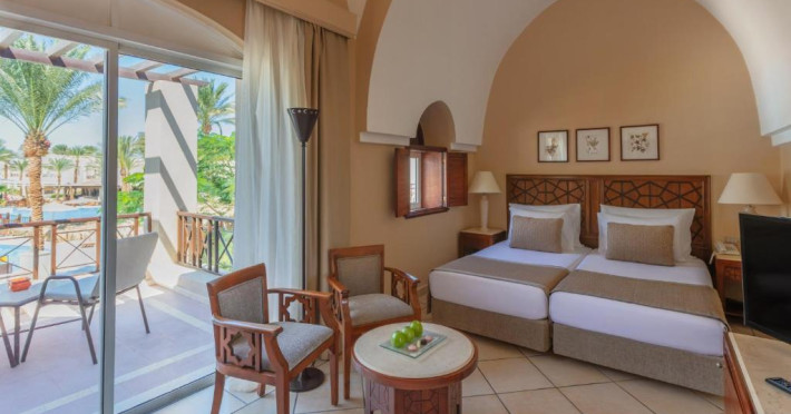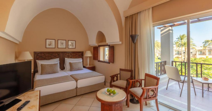 Toate camerele de la Iberotel Makadi Beach sunt dotate cu aer condiționat, minibar și seif personal. Unele au vedere panoramică la Marea Roșie, altele au vedere la grădină.