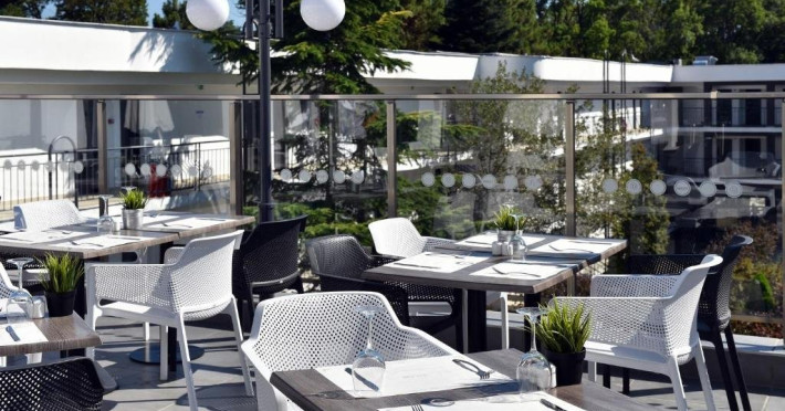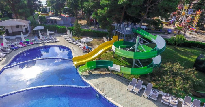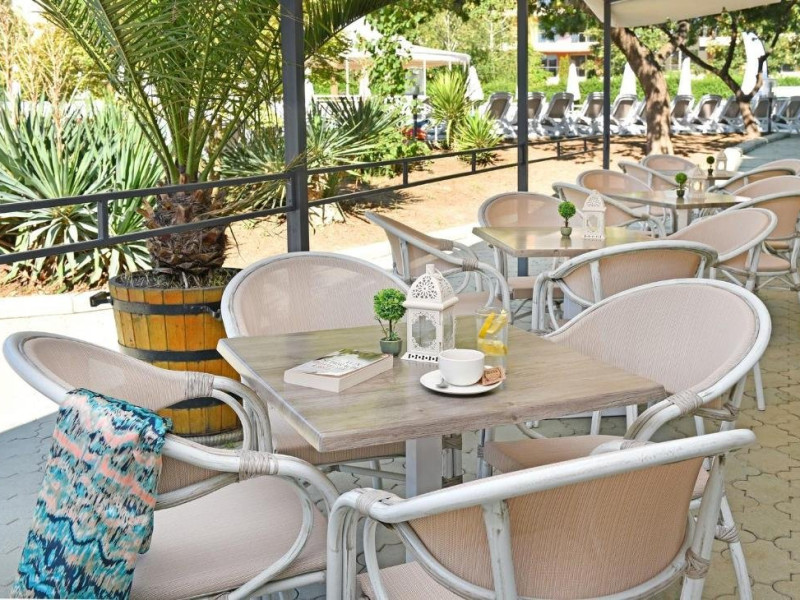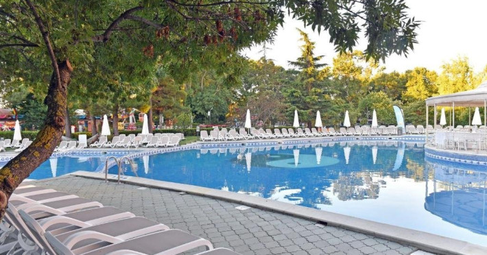 Mancare si bauturi: Restaurantul Bufet Principal Sofran ofera preparate din bucataria internationala inspirata din conceptele de mancare sanatoasa si diversa, cu o multime de legume si fructe proaspete, preparate din carne si peste. Oaspetii se pot bucura de gatit in spectacol, sculptura in spectacol si bufete tematice - nopti italiene, peste, internationale, balcanice si bucatari. - Mic dejun tip bufet: 07:30-10:30 - o varietate de preparate calde si reci, specialitati din oua, o varietate de produse lactate, carnati si branzeturi, produse de patiserie, cereale, fructe etc. - Pranz tip bufet: 12:30-14:30 - selectie de salate proaspete, supe, feluri principale variate bulgare si internationale, produse de panificatie, bufet de deserturi etc. - Cina tip bufet: 18:00-21:00 - varietate de salate, supe, paste, preparate vegetariene si din carne, produse de panificatie, bufet de deserturi etc. A-la-carte restaurant Avalon ofera delicii culinare atent selectate intr-o atmosfera relaxata si romantica. Drept compliment, oaspetii cu sejururi de minim 7 nopti pot vizita restaurantul gratuit o singura data. Oaspetii cu mai putin de 7 nopti sunt bineveniti la un cost suplimentar. Rezervarile sunt necesare la receptie cu cel putin 2 zile inainte. 18:00 - 22:00 (in functie de disponibilitate) Pizza & Snacks Corner around the pool (10:30-18:00) - gustari calde si reci, kebab turcesc, pizza, cartofi prajiti, burgeri, salate, fructe si dulciuri. Ice cream & Pool bar (09:00-23:00) - inghetata, bauturi alcoolice si nealcoolice locale, cocktailuri, bauturi racoritoare, bere, vin, ceai, cafea si apa. Lobby bar and library corner (08:00 - 00:00) - ofera bauturi alcoolice si nealcoolice locale, cocktailuri, bauturi racoritoare, bere, vin, ceai, cafea si apa. Sport si divertisment: Piscina in aer liber Umbrele si sezlonguri in jurul piscinei Piscina interioara, fitness, sauna Wi-Fi in zonele publice si in camere Seif in camera Program zilnic de animatie pentru copii si adulti - 6 zile pe saptamana Animatie sportiva la piscina sau la gradina Prosoape de piscina - nu se solicita depozit