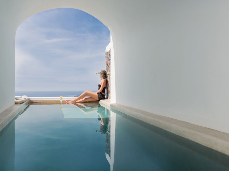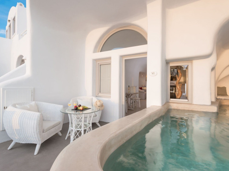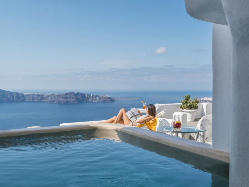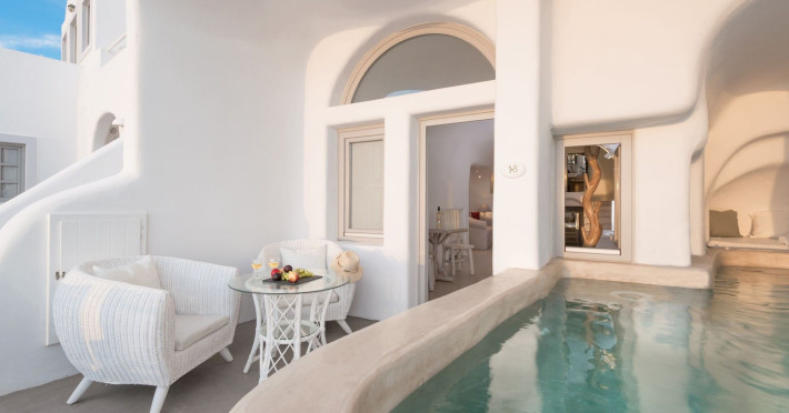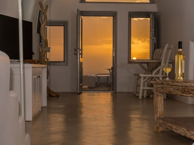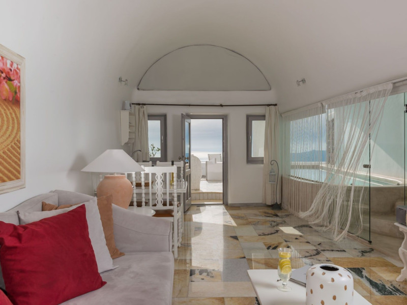 Featuring impressive views over the Caldera from guestrooms and public areas, Iliovasilema Hotel & Suites is on the top of the cliff, 1.2 mi from Fira. It offers a pool and snack bar. Offering elegant and minimalist decor in modern Cycladic style, all accommodation types at the Iliovasilema have flat-screen satellite TVs, well-stocked mini-bars and air conditioning. Free Wi-Fi is offered in all units. Iliovasilema Hotel & Suites’ bar area with views of the Aegean Sea is ideal for evening cocktails. Light dishes are served at the snack bar or through room service. Restaurants and bars are within a 3-minute walk. The hotel is 801 m from Skaros. Thira Airport is 5 mi away. Staff at the 24-hour front desk can arrange car rental.