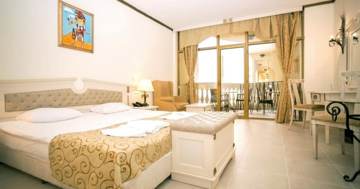 * Bauturile alcoolice la toate barurile se servesc in 50 ml. *Alcoolul nu este servit oaspetilor sub 18 ani. Sport si divertisment: Piscina cu sezlonguri si umbrele, in functie de disponibilitate Internet - gratuit in zonele comune si in camere Pentru copii: Scaune inalte in restaurant Animatie - 6 zile pe saptamana Loc de joaca NOU Pachet copii - pentru un sejur de 5 zile - folosirea o singura data a atractiilor pentru copii situate in zona hotelului. / O vizita pe zi de 10 min /. Cu rezervare prealabila la receptie. Servicii contra cost: Minimarket: 08:30 - 20:00 /mancare si bauturi la pachet, tigari, alcool, carti postale si suveniruri/ Seif in camera: platit, disponibil numai daca serviciul va fi utilizat pe toata durata sejurului Umbrele si sezlonguri pe plaja Tratamente spa, sauna, jacuzzi, masaje, baie turceasca, aromaterapie, coafor, manichiura, telefon, taxi, inchirieri auto, doctor