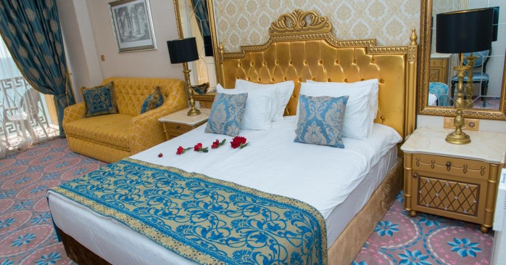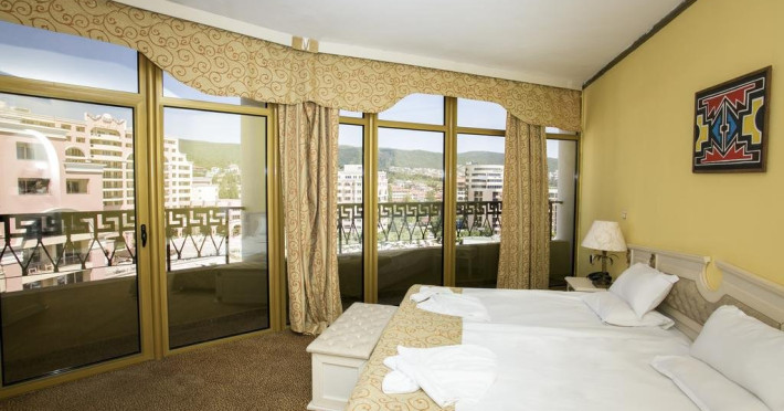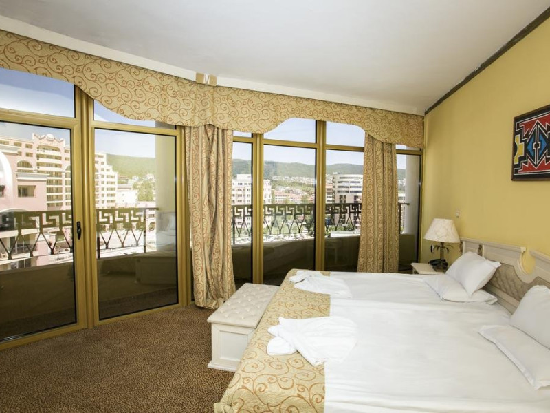 Imperial Palace este un hotel pe malul marii, situat in partea de nord a Sunny Beach, la 3 km de centrul statiunii, la 10 m de o statie de autobuz, la 35 km de aeroportul Burgas. Cazare: Hotelul dispune de 545 camere - 418 camere duble, 67 camere duble fara balcon, 42 studiouri si 16 camere single. Cladirea cu noua etaje este deservita de 4 lifturi. SGL NO BALCONY: Aprox. 20 mp. Camerele sunt fara balcon, au pat matrimonial, telefon, televizor, aer conditionat centralizat, seif, uscator de par, mini frigider, baie cu dus sau cada, uscator de par. Capacitatea maxima de cazare este de 1 adult. SGL: Aprox. suprafata 20 mp. Camerele au pat matrimonial, balcon, telefon, TV, aer conditionat centralizat, seif, uscator de par, mini frigider, baie cu dus sau cada, uscator de par. Capacitatea maxima de cazare este de 1 adult. SGL SEA: Aprox. 20 mp. Camerele au pat matrimonial, balcon cu vedere la mare, telefon, TV, aer conditionat centralizat, seif, uscator de par, minifrigider, baie cu dus sau cada, uscator de par. Capacitatea maxima de cazare este de 1 adult. DBL 2+0 NO BALCONY: Aprox. 20 mp. Camerele sunt fara balcon, cu paturi duble sau twin, telefon, TV, aer conditionat central, seif, uscator de par, mini frigider, baie cu dus sau cada. Capacitatea maxima este de 2 adulti. DBL 2+1/ 2+2: Aprox.25-35 mp. Camerele au paturi duble sau twin, canapea extensibila, balcon cu vedere la parc, telefon, TV, aer conditionat centralizat, seif, uscator de par, mini frigider, baie cu dus sau cada. Capacitatea maxima este de 2 adulti si 2 copii sau 3 adulti. DBL 2+1/ 2+2 SEA: Aprox.25-35 mp. Camerele au paturi duble sau twin, canapea extensibila, balcon cu vedere la mare, telefon, TV, aer conditionat centralizat, seif, uscator de par, mini frigider, baie cu dus sau cada. Capacitatea maxima este de 2 adulti si 2 copii sau 3 adulti. STUDIO 3+1/ 2+3 SEA: Aprox. 40 mp. Studiourile au pat dublu, canapea extensibila, zona de relaxare, balcon cu vedere la mare, telefon, TV, aer conditionat centralizat, seif, uscator de par, minifrigider, baie cu dus sau cada, uscator de par. Capacitatea maxima este de 3 adulti si 1 copil sau 2 adulti si 3 copii. DBL 2+1/ 2+2 SUPERIOR: Aprox. 25-35 mp. Camerele au pat matrimonial, canapea extensibila, balcon cu vedere la parc, telefon, TV, aer conditionat centralizat, seif, uscator de par, mini frigider, baie cu dus. Capacitatea maxima este de 2 adulti si 2 copii sau 3 adulti. DBL 2+1/ 2+2 SUPERIOR SEA: Aprox. 25-35 mp. Camerele au pat dublu, canapea extensibila, balcon cu vedere la mare, telefon, TV, aer conditionat centralizat, seif, uscator de par, mini frigider, baie cu dus. Capacitatea maxima este de 2 adulti si 2 copii sau 3 adulti. Bebelusii sunt inclusi in capacitatea maxima, doar in studiourile pot fi cazati pana la 1 bebelus peste capacitatea maxima. Patutul este oferit gratuit, la cerere prealabila. Hotelul dispune de o camera adaptata pentru persoane cu dizabilitati. Animalele de companie nu sunt permise. Despre hotel: Micul dejun, pranzul si cina sunt servite in restaurantul principal Hollywood. Exista un lobby bar Safari (inclus in conceptul AI), Victory Pub (inclus in conceptul AI), Mezzanine Bar (inclus in conceptul AI+), Pool Bar (inclus in conceptul AI), Beach Bar (inclus in conceptul AI+). Schimb valutar, magazine, sezlonguri si umbrele gratuite in jurul piscinei, seif in camera (contra cost), Wi-Fi in zonele comune si in camere. SPA: sauna, baie de aburi, baie turceasca, masaje, salon de coafura si infrumusetare. Parcare: contra cost 25 BGN/zi, nepazita, in functie de disponibilitate *Hotelul isi rezerva dreptul de a modifica pretul parcarii in orice moment. ALL INCLUSIVE in IMPERIAL PALACE **** pentru sezonul de vara 2025 include: Check-in: dupa ora 15:00 Check-out: pana la ora 11:00 * All inclusive incepe cu cina in ziua sosirii si se termina cu pranzul in ziua plecarii.