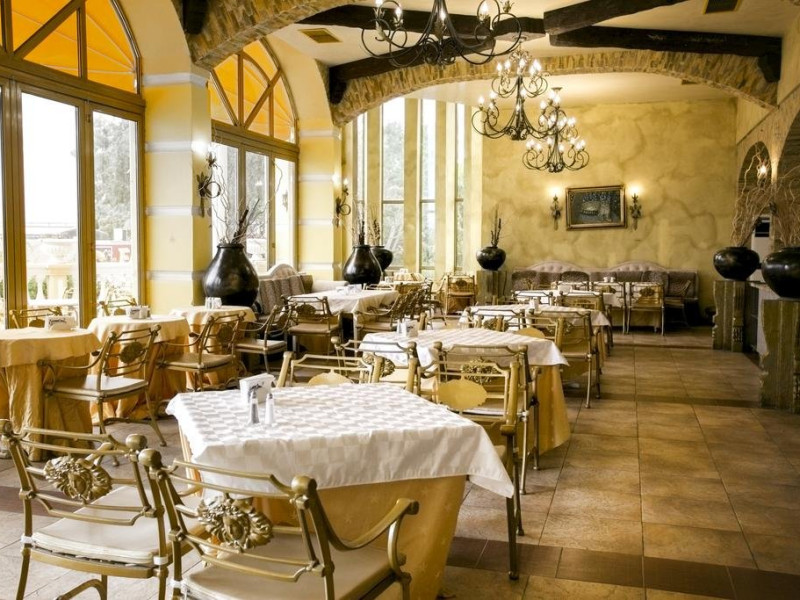 Mancare si bauturi: - Mic dejun: 07:30 - 10:00 Bufet - o varietate de preparate calde si reci, specialitati din oua, diverse lactate, carnati si branzeturi, produse de patiserie, cereale, fructe, bauturi racoritoare si calde. - Pranz: 13:00 - 15:00 Bufet - o varietate de salate si supe proaspete, o mare varietate de mancaruri bulgaresti si internationale, mancaruri vegetariene si din carne, paste, o selectie de produse de panificatie, un bufet dulci cu o varietate de deserturi, apa, bauturi racoritoare si calde, bere, vin rosu si alb. - Cina: 18:00 - 21:00 Bufet - varietate de salate si supe proaspete, o mare varietate de mancaruri bulgaresti si internationale, mancaruri vegetariene si din carne, paste, bufet dulci cu o selectie de deserturi, ceai, cafea, lapte, apa si bauturi racoritoare, bere, vin rosu si alb. * Cod vestimentar pentru pranz si cina - Casual | Cine tematice in restaurantul principal Gustari si bauturi: Lobby bar Safari: 10:00 - 17:00 Bauturi bulgare fara alcool, cu continut scazut de alcool si cu continut ridicat de alcool. Pool Bar : 10:00 - 22:00 Bauturi bulgaresti fara alcool, cu continut scazut de alcool si cu continut ridicat de alcool. Snack bar Victoria: 10:00 - 16:00 - Gustari - Serveste o varietate de sandvisuri, burgeri, fructe proaspete, inghetata, bauturi calde si reci *Snack bar Victoria 18:00 - 20:00 - Cina - Bufet /doar la ocupare mare/. Victory Pub: 17:00-23:00 - Bauturi bulgaresti fara alcool, cu continut scazut de alcool si cu continut ridicat de alcool.