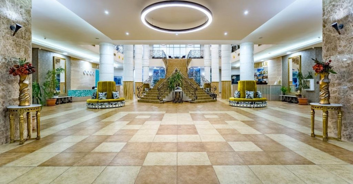 Mic dejun tip bufet: 7:30-10:00 h - (restaurant Casablanca sau Alexandria) - o varietate de preparate calde si reci, specialitati din oua, o varietate de produse lactate, carnati si branzeturi, produse de patiserie, cereale, fructe, ceai, cafea, lapte cald si rece, apa si suc Pranz tip bufet: 12:00-14:00 - (restaurant Alexandria) - o selectie de salate si supe proaspete, bogat variate din mancaruri bulgaresti si internationale, preparate vegetariene si din carne, paste, o selectie de produse de panificatie, bufet dulci cu un varietate de deserturi, apa, bauturi racoritoare, suc, bere la halba, vin rosu si alb Cina tip bufet: 18:00-21:00 (restaurant Casablanca sau Alexandria) - o selectie de salate si supe proaspete, bogat variate din preparate bulgaresti si internationale, preparate vegetariene si din carne, paste, o selectie de produse de panificatie, bufet dulci cu o varietate de deserturi, apa, bauturi racoritoare, suc, bere la halba, vin rosu si alb Gustare la miezul noptii: 00:00-06:00 h (restaurant Alexandria) - supa, bufet rece *Cine tematice - de 5 ori pe saptamana (bulgara, greaca, italiana, imperial si araba) *Meniul vegetarian este disponibil. *Meniul dietetic este disponibil la cerere. *Bufet pentru bebelusi in restaurant. Snack Bar food court LA PIAZZA in zona degradina: Mic dejun tarziu: 10:00-12:00 - bufet rece, clatite, vafe, paine prajita calda, omlete, oua prajite, fructe, dulciuri Pranz: 12:00-15:00 - BBQ, doner, paste, salate, pizza, deserturi Gustare de dupa-amiaza: 15:00-17:00 - pizza, hot dog, burger, sandvisuri, clatite, gogosi, deserturi Bauturi: 10:00-24:00 - ceai, cafea, lapte Inghetata: 12:00-17:00 h