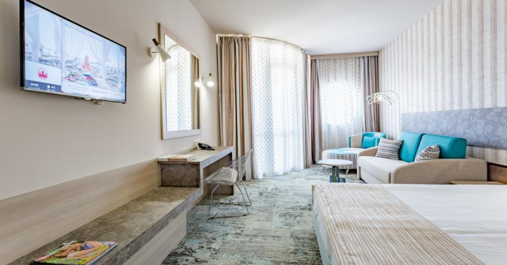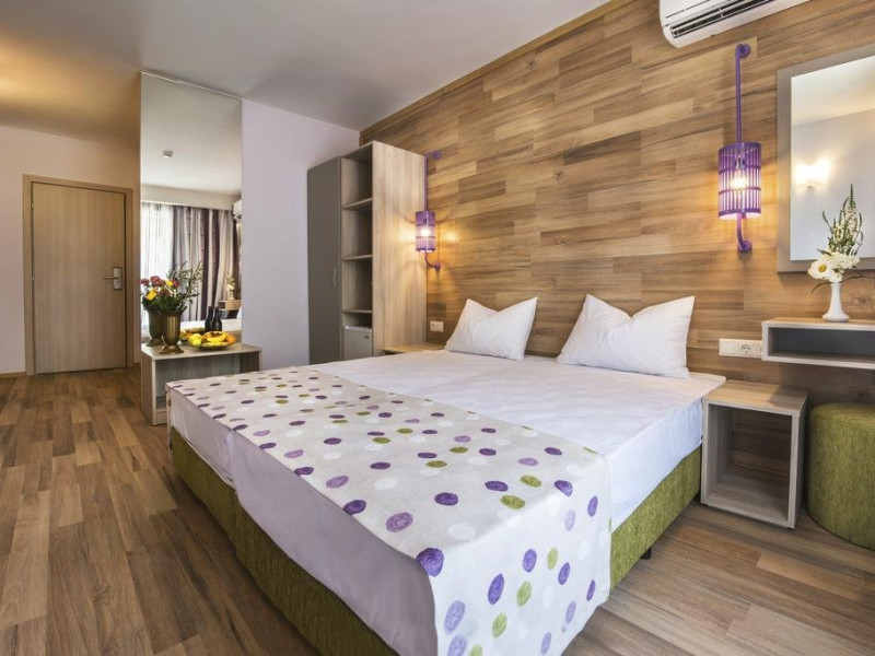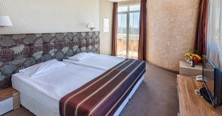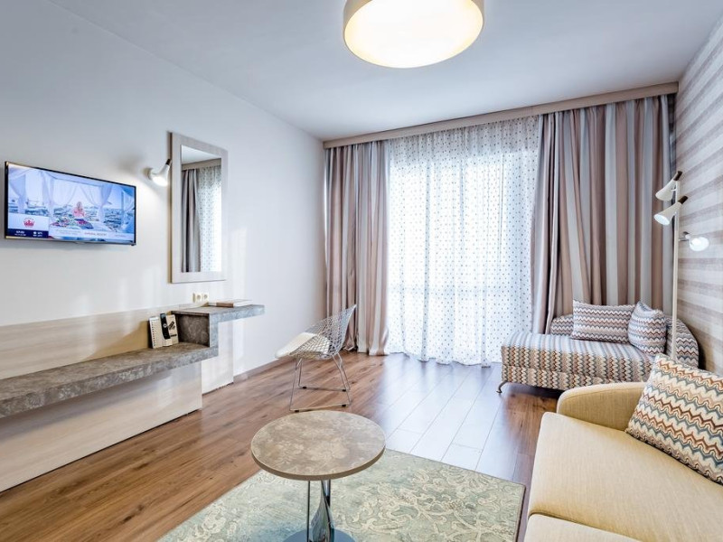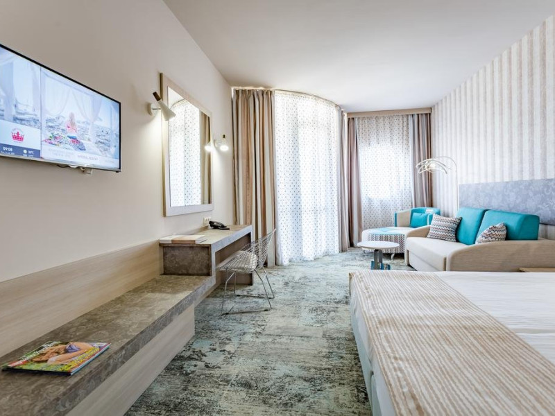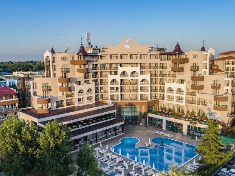 Imperial Resort este situat in partea de sud a Sunny Beach, aproape de Nessebar si de orasulsau antic si la numai 150 de metri de plaja. Cu camerele sale recent renovatesi zonele comune si produsul de inalta calitate, statiunea promite confort si relaxare completa. Facilitati Construit pe unteren de 15000 mp, complexul Imperial este format din doua cladiri complet renovate - Imperial Beach (8 etaje) si Imperial Sands (4 etaje) si un total de496 de camere mobilate luxos. O receptie, doua holuri ale hotelului, doua restaurante principale, un total de sase baruri, 4 lifturi (cladirea Imperial Beach) si un lift (cladirea Imperial Sands), plaja privata (sezlonguri si umbrela de soare - contra cost), loc de joaca multifunctional. Wi-Fi gratuit incamere si in zonele comune. Magazine, schimb valutar, 4 sali de conferinte cu capacitate totala - 350 de locuri. Centrul spa. Doua piscine in aer liber cusezlonguri si umbrele de soare, 1 piscina interioara. Cazare In cladirea Imperial Sands (cladire aditionala): 218 Camere duble - (25 m2) max 2+1/3+0, doua paturi de o persoana si canapea ca pat suplimentar pentru 1 copil sau 1 adult; vedere la parc/ strada/ gradina 21 Family Room - (40 m2) max 3+1, doua camere duble standard comunicante, 4 paturi single, fara paturi suplimentare; vedere la parc 17 Apartamente cu doua dormitoare (Apartament Familial Vedere Parc) - (45 m2) max 4+2, doua dormitoare cu living, pat suplimentar o canapea pentru 2 copii sau 1 adult; doua bai In cladirea Imperial Beach (cladire principala): 182 Camere Double Deluxe - (30 m2) max 3+0, doua paturi de o persoana, patul suplimentar este o canapea pentru 1 copil sau 1 adult; vedere la parc/ la mare/ la mare 27 Studiouri - (35 m2) max 3+1, doua paturi de o persoana si suplimentar ca canapea pentru 1 adult sau 2 copii; vedere la parc/ la mare/ la mare 8 Apartamente cu un dormitor (Apartament Deluxe) - (40 m2) max 4+0, camere comunicante (living si dormitor), 2 bai, pat suplimentar este o canapea pentru 2 adulti sau 2 copii; vedere la mare/parc Toate camerele sunt spatioase, mobilate recent. Toate camerele sunt dotate cu ecran plat.Televizor, Wi-Fi gratuit, seif (gratuit), aer conditionat si telefon cu linie directa (contra cost), baie cu dus si uscator de par. De la balconul camerei oaspetii se pot bucura de privelistile frumoase ale coastei si peisajului Sunny Beach. Copii: Patuturi pentru copii (la cerere, gratuite), scaune inalte in restaurant, loc de joaca pentrucopii, piscine pentru copii. Mini Club pentru copii cu varsta cuprinsa intre 3 si 12 ani este deschis 6 zile pe saptamana, mai - septembrie. Sport si divertisment Gratuit: doua piscine in aer liber cu sezlonguri si umbrele de soare, 1 piscina interioara,jacuzzi, animatie de zi si de seara pentru adulti si copii, care include aerobic. Teren de joaca multifunctional. Tenis de masa (cu depozit), sageti. Contra cost: la Imperial Beach - aprox. 18 lv pe zi pentru un pachet de 2 sezlonguri + 1 umbrele de soare la plaja / in functie de disponibilitate /, sali de conferinte, centru spa, baie turceasca, sauna, sauna cu infrarosu, masaj, mini golf, biliard, parcare.Doctor - la cerere - serviciu extern. Animalele de companie nu sunt permise. Parcare: nepazita, 25 BGN pe zi, in functie de disponibilitate. Hotelul isi rezerva dreptul de a modifica pretul parcarii in orice moment.