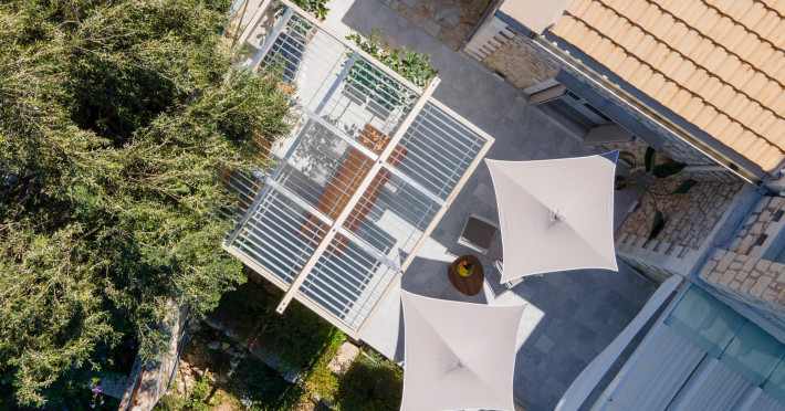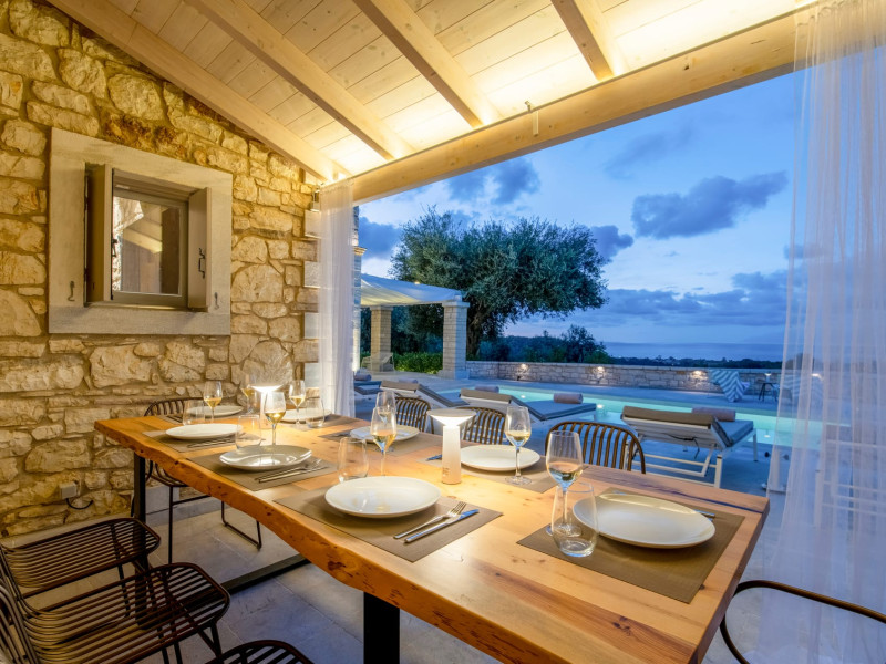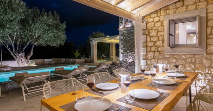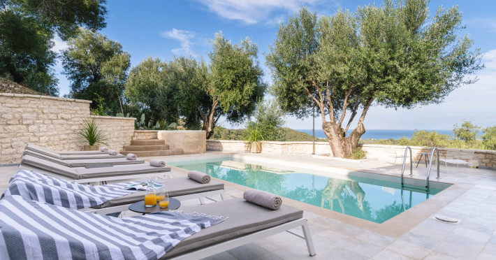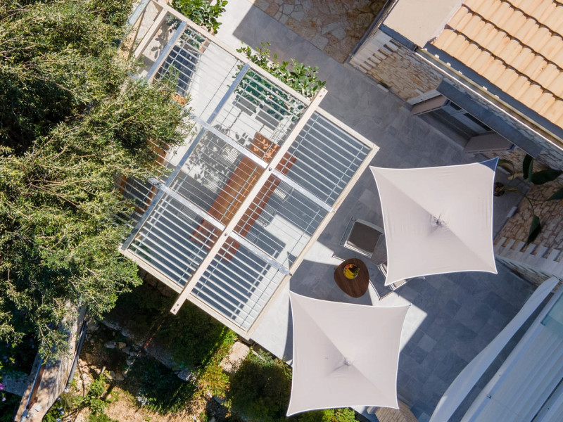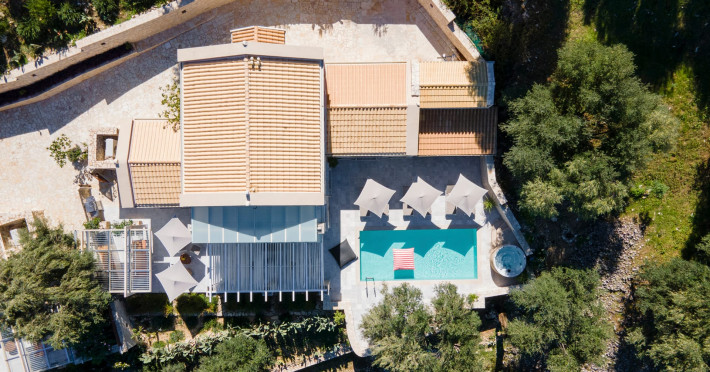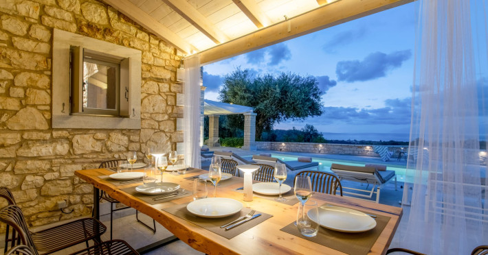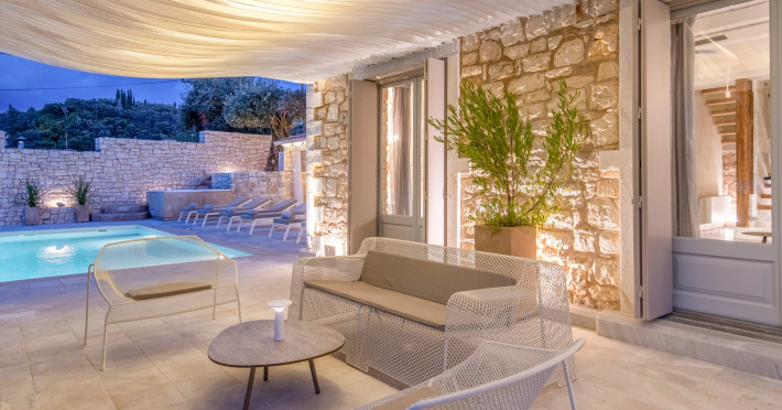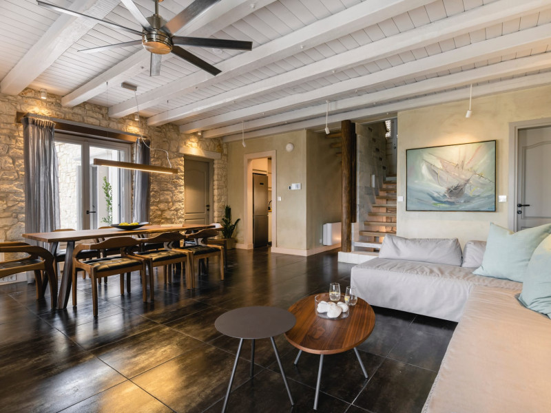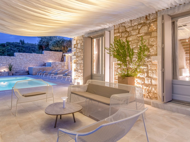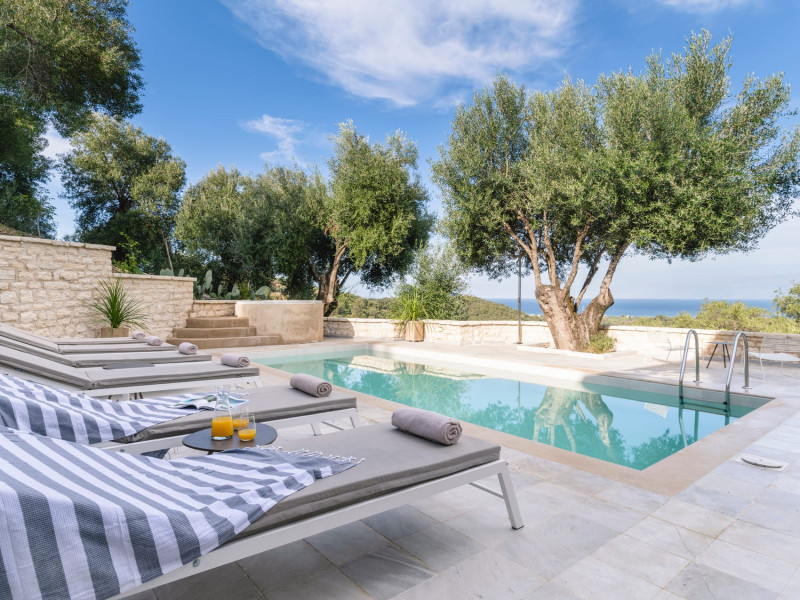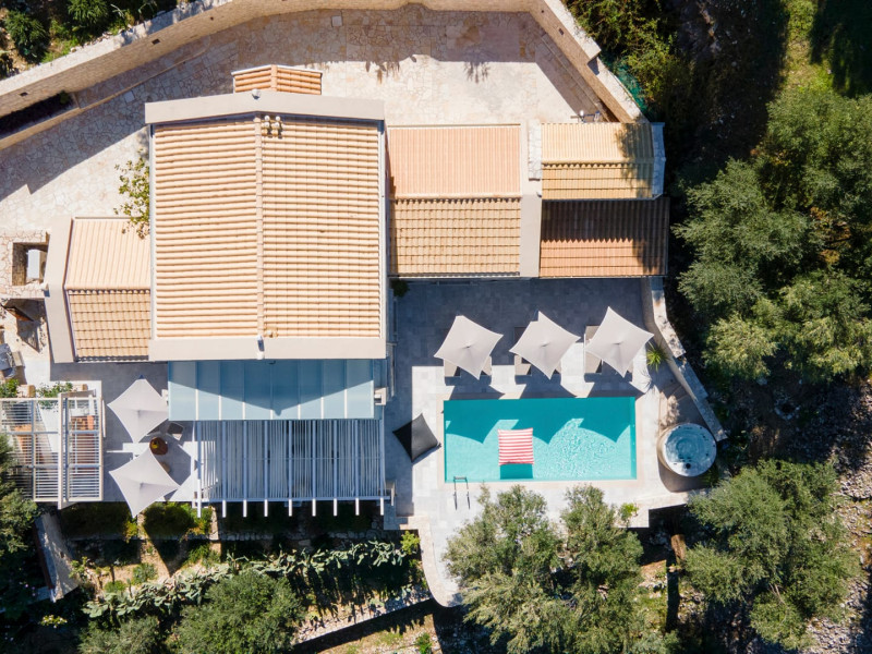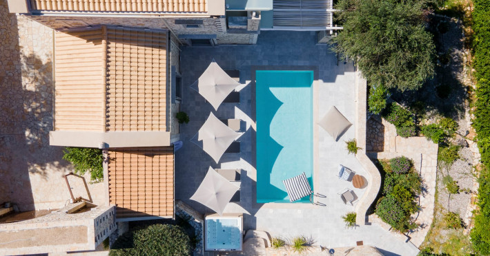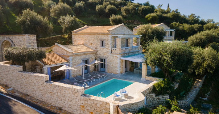 Ionianstone Luxury Villas in Corfu feature two independent neighboring villas that can be enjoyed separately or together. Each villa can host up to 8 persons, features its own entrance, private outdoor living areas, swimming pool and hot tub. If booked together, the villas can host up to 16 persons. Each villa boasts a luxurious indoor space of 205 sq.m with an additional 210 sq..m of private outdoor living areas, a gated parking space that accommodates up to two cars and panoramic sea and mountain views.The property plot spans over 6,570 square meters. The elegant and luxurious design is both contemporary and timeless, with carefully chosen furnishings and decor that perfectly complement the stunning natural surroundings. IonianStone Luxury Villas in Corfu provide discerning travelers privacy and tranquility. LocationNestled on the slopes of Vasilika in the peaceful Perithia area, IonianStone Estate enjoys a privileged position in the northeastern part of Corfu. This serene setting offers rare seclusion, yet it’s located near Kassiopi and Agios Stefanos—two of the island’s most exclusive coastal destinations, known for their crystal-clear waters, elegant dining, and understated luxury. Indoor spacesEach villa features generous indoor spaces:living room,dining area for 8 guestsfully equipped kitchen4 beautifully decorated rooms: 3 double master bedrooms with en-suite bathrooms with a shower and 1 additional double room with an adjacent bathroom with a shower. Two of the bedrooms are on the first floor, offering balconies overlooking the sea. Outdoor spacesEach villa guarantees privacy and offers:shaded pergola and sun-bathed terraces32 sq.m. private poolhydro massage for 5 persons outdoor dining for 8 personslounge areas to relax and enjoy the gorgeous views.fully equipped outdoor kitchen, with a kitchen island bar to enjoy breakfast, a meal or a drink al fresco. It may also facilitate the services of a private chef, who can access it directly from the outside, so that the privacy of the house is protected. AmenitiesThe villas are equipped with every modern amenity, including:air-conditioning / heatingceiling fans in all roomsSonos speakers,smart TV in all roomshigh-speed Wi-Fi connectivityoutdoor training equipmentin-pool training equipment Frequently Asked Questions1. What are the check-in and check-out times at IonianStone Luxury Villas?Check-in starts at 16:00 and check-out must be completed by 11:00. Early check-in or late check-out is possible upon request and subject to availability.2. How many persons does the property host?Ionianstone Luxury Villas in Corfu feature two independent neighboring villas that can be enjoyed separately or together. Each villa can host up to 8 persons, features its own entrance, private outdoor living areas, swimming pool and hot tub. If booked together, the villas can host up to 16 persons.3. Are the villas suitable for families or groups?The villas are designed for families or groups, offering spacious layouts for a comfortable stay, with options for both indoor and outdoor gathering or privacy. You can enjoy one villa if you are a group of up to 8 persons or both villas if your group is up to 16 persons.4. Is parking available at the property?Yes, the property offers gated parking space, that accommodates up to 2 cars per villa (4 cars total)5. Is there a reception or concierge service?We will arrange to welcome you when you arrive and we are available by phone or WhatsApp for any assistance you may need during your stay at info@ionianstone.com or WhatsApp at +306948549826.6. Is housekeeping provided?Yes, we offer housekeeping a week linen/towel change twice a week.7. Do you provide cots or high chairs for infants?Yes, cots and high chairs are provided free of charge, upon request.8. Is there Wi-Fi in the property?Yes, free high-speed Wi-Fi is available.9. Are pets allowed?No, pets are not allowed.10. Is smoking allowed?Smoking is not allowed inside the houses, smoking is allowed in the common outdoor areas.11. How far is the property from nearby beaches and attractions?Nestled on the slopes of Vasilika in the peaceful Perithia area, IonianStone Estate enjoys a privileged position in the northeastern part of Corfu. This serene setting offers rare seclusion, yet it’s located near Kassiopi and Agios Stefanos—two of the island’s most exclusive coastal destinations, known for their crystal-clear waters, elegant dining, and understated luxury.Here are some indicative distances:-Almiros 3.2 km: Long, quiet beach with tavernas.-Acharavi 4.4 km: the nearest village with super markets bakeries, shops, tavernas and a long beachline .-Kalamaki 5.1 km : Sandy, clean beach with sunbeds and two tavernas.-Kassiopi 9.6 km: Popular village with a port, nightlife, and small coves for swimming.-Avlaki 11.9 km: Quiet, clean pebbly beach with two tavernas.-Agios Stefanos 15 km: Smaller popular port with tavernas.-Kerasia 16.8 km: Quiet, clean pebbly beach with one fish tavern.-Loggas 19.4 km: Spectacular coast, especially for sunset, on the west.-Old Peritheia 11.4 km : An abandoned Venetian village with 3-4 tavernas-Corfu Town 42.8 km: a blend of cultural histories and influences – French, English, Venetian, and, of course, Greek12. Do you provide chef services?Yes, we can arrange chef services at an additional charge, upon request (subjects to availabiltity). Please contact us in advance at : info@ionianstone.com13. Do you provide transfers to/from the airport or port?Yes, we can arrange transfers at an additional charge, upon request (subjects to acailabiltity). Please contact us in advance at : info@ionianstone.com14. Do you provide spa services?Yes, we can arrange spa services upon request, directly in the comfort of the villa (subjects to availabiltity). Please contact us in advance at : info@ionianstone.com15. Do you provide suggestions about activities, day trips, places to eat on the island?Of course! We provide our guests a guidebook with a curat