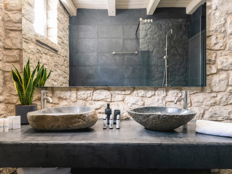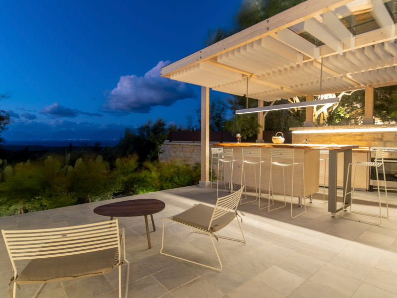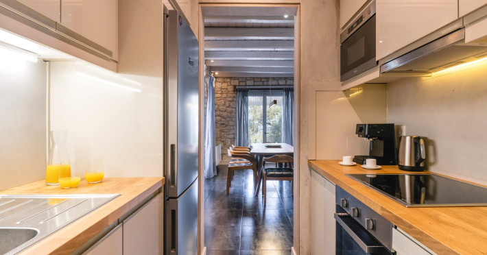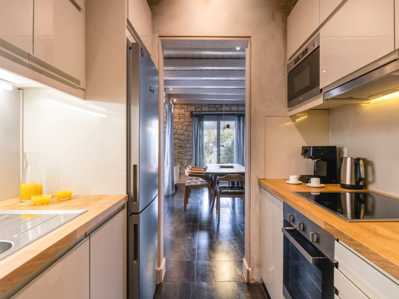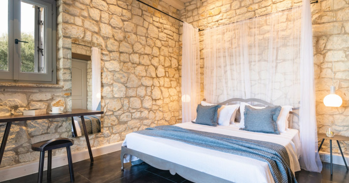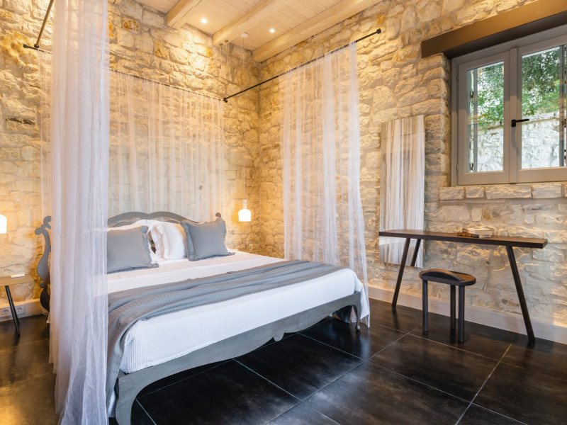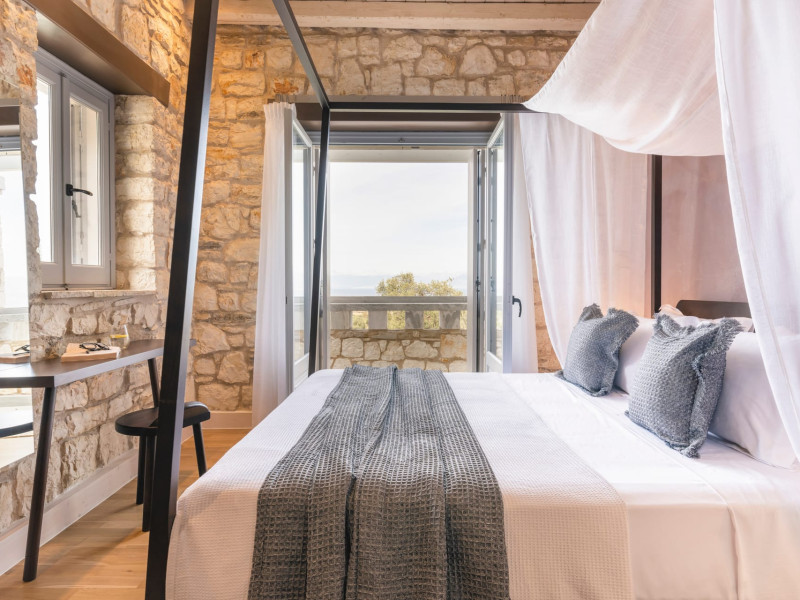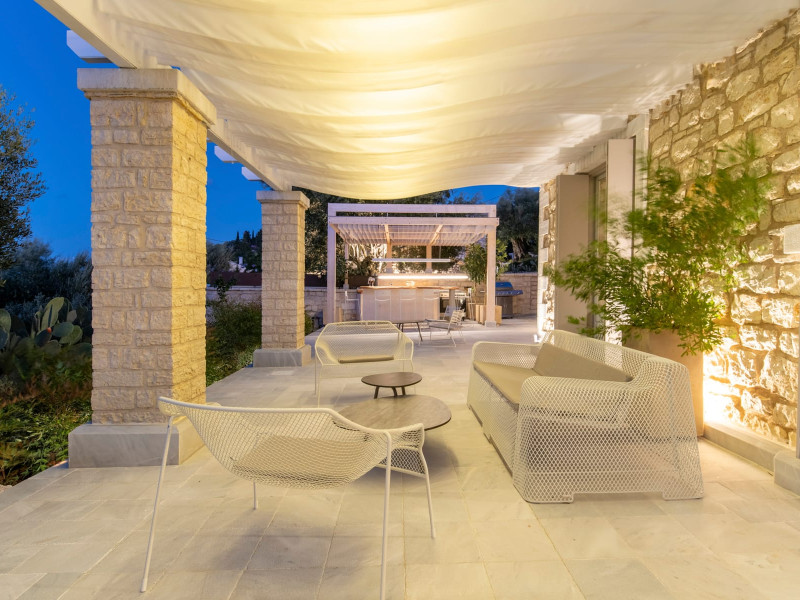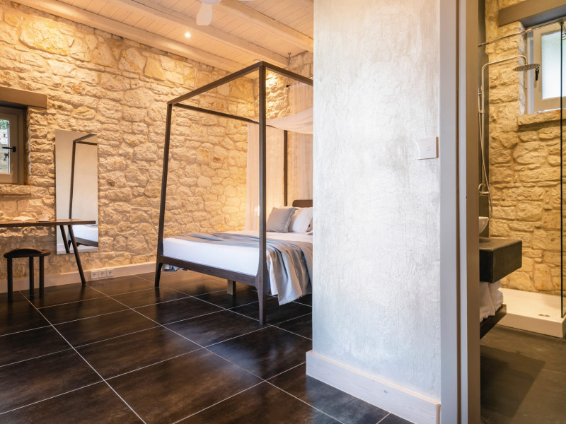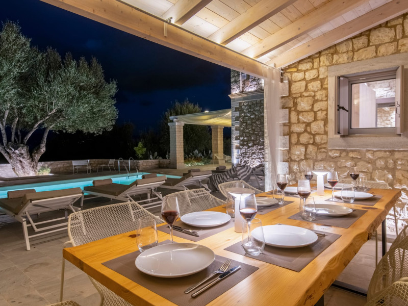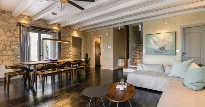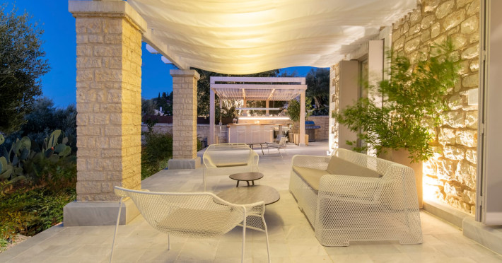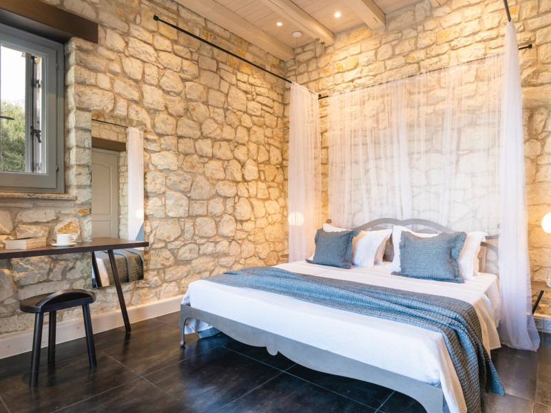 Ionianstone Luxury Villas in Corfu feature two independent neighboring villas that can be enjoyed separately or together. Each villa can host up to 8 persons, features its own entrance, private outdoor living areas, swimming pool and hot tub. If booked together, the villas can host up to 16 persons. Each villa boasts a luxurious indoor space of 205 sq.m with an additional 210 sq..m of private outdoor living areas, a gated parking space that accommodates up to two cars and panoramic sea and mountain views.The property plot spans over 6,570 square meters. The elegant and luxurious design is both contemporary and timeless, with carefully chosen furnishings and decor that perfectly complement the stunning natural surroundings. IonianStone Luxury Villas in Corfu provide discerning travelers privacy and tranquility. LocationNestled on the slopes of Vasilika in the peaceful Perithia area, IonianStone Estate enjoys a privileged position in the northeastern part of Corfu. This serene setting offers rare seclusion, yet it’s located near Kassiopi and Agios Stefanos—two of the island’s most exclusive coastal destinations, known for their crystal-clear waters, elegant dining, and understated luxury. Indoor spacesEach villa features generous indoor spaces:living room,dining area for 8 guestsfully equipped kitchen4 beautifully decorated rooms: 3 double master bedrooms with en-suite bathrooms with a shower and 1 additional double room with an adjacent bathroom with a shower. Two of the bedrooms are on the first floor, offering balconies overlooking the sea. Outdoor spacesEach villa guarantees privacy and offers:shaded pergola and sun-bathed terraces32 sq.m. private poolhydro massage for 5 persons outdoor dining for 8 personslounge areas to relax and enjoy the gorgeous views.fully equipped outdoor kitchen, with a kitchen island bar to enjoy breakfast, a meal or a drink al fresco. It may also facilitate the services of a private chef, who can access it directly from the outside, so that the privacy of the house is protected. AmenitiesThe villas are equipped with every modern amenity, including:air-conditioning / heatingceiling fans in all roomsSonos speakers,smart TV in all roomshigh-speed Wi-Fi connectivityoutdoor training equipmentin-pool training equipment Frequently Asked Questions1. What are the check-in and check-out times at IonianStone Luxury Villas?Check-in starts at 16:00 and check-out must be completed by 11:00. Early check-in or late check-out is possible upon request and subject to availability.2. How many persons does the property host?Ionianstone Luxury Villas in Corfu feature two independent neighboring villas that can be enjoyed separately or together. Each villa can host up to 8 persons, features its own entrance, private outdoor living areas, swimming pool and hot tub. If booked together, the villas can host up to 16 persons.3. Are the villas suitable for families or groups?The villas are designed for families or groups, offering spacious layouts for a comfortable stay, with options for both indoor and outdoor gathering or privacy. You can enjoy one villa if you are a group of up to 8 persons or both villas if your group is up to 16 persons.4. Is parking available at the property?Yes, the property offers gated parking space, that accommodates up to 2 cars per villa (4 cars total)5. Is there a reception or concierge service?We will arrange to welcome you when you arrive and we are available by phone or WhatsApp for any assistance you may need during your stay at info@ionianstone.com or WhatsApp at +306948549826.6. Is housekeeping provided?Yes, we offer housekeeping a week linen/towel change twice a week.7. Do you provide cots or high chairs for infants?Yes, cots and high chairs are provided free of charge, upon request.8. Is there Wi-Fi in the property?Yes, free high-speed Wi-Fi is available.9. Are pets allowed?No, pets are not allowed.10. Is smoking allowed?Smoking is not allowed inside the houses, smoking is allowed in the common outdoor areas.11. How far is the property from nearby beaches and attractions?Nestled on the slopes of Vasilika in the peaceful Perithia area, IonianStone Estate enjoys a privileged position in the northeastern part of Corfu. This serene setting offers rare seclusion, yet it’s located near Kassiopi and Agios Stefanos—two of the island’s most exclusive coastal destinations, known for their crystal-clear waters, elegant dining, and understated luxury.Here are some indicative distances:-Almiros 3.2 km: Long, quiet beach with tavernas.-Acharavi 4.4 km: the nearest village with super markets bakeries, shops, tavernas and a long beachline .-Kalamaki 5.1 km : Sandy, clean beach with sunbeds and two tavernas.-Kassiopi 9.6 km: Popular village with a port, nightlife, and small coves for swimming.-Avlaki 11.9 km: Quiet, clean pebbly beach with two tavernas.-Agios Stefanos 15 km: Smaller popular port with tavernas.-Kerasia 16.8 km: Quiet, clean pebbly beach with one fish tavern.-Loggas 19.4 km: Spectacular coast, especially for sunset, on the west.-Old Peritheia 11.4 km : An abandoned Venetian village with 3-4 tavernas-Corfu Town 42.8 km: a blend of cultural histories and influences – French, English, Venetian, and, of course, Greek12. Do you provide chef services?Yes, we can arrange chef services at an additional charge, upon request (subjects to availabiltity). Please contact us in advance at : info@ionianstone.com13. Do you provide transfers to/from the airport or port?Yes, we can arrange transfers at an additional charge, upon request (subjects to acailabiltity). Please contact us in advance at : info@ionianstone.com14. Do you provide spa services?Yes, we can arrange spa services upon request, directly in the comfort of the villa (subjects to availabiltity). Please contact us in advance at : info@ionianstone.com15. Do you provide suggestions about activities, day trips, places to eat on the island?Of course! We provide our guests a guidebook with a curat