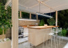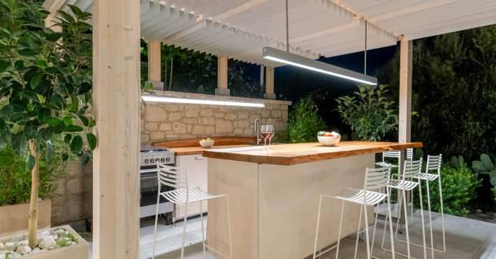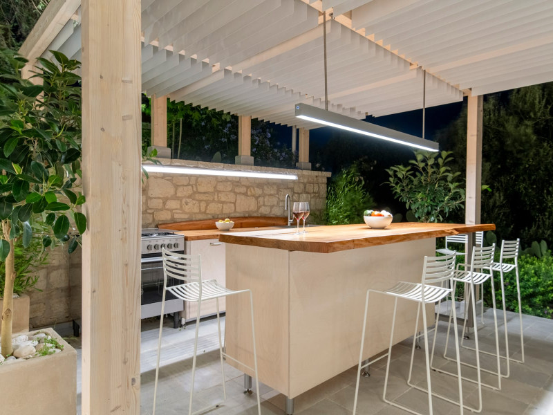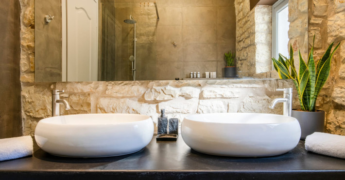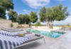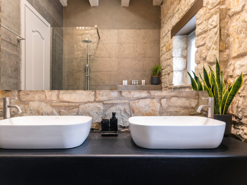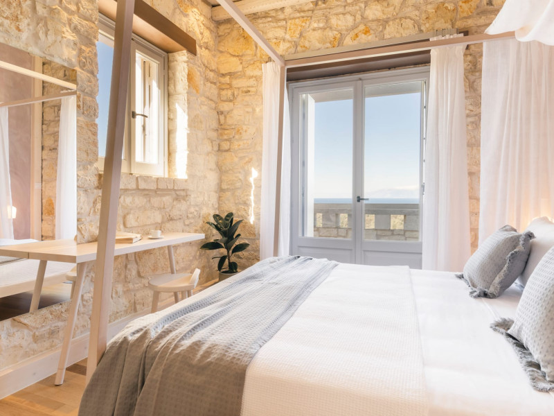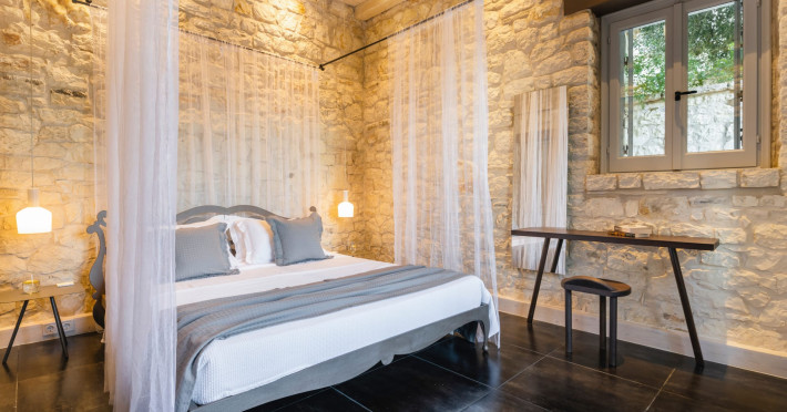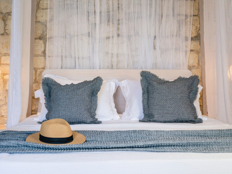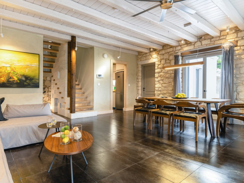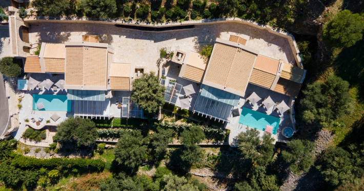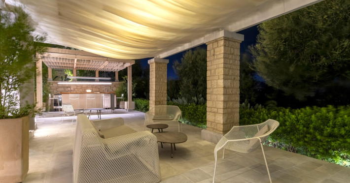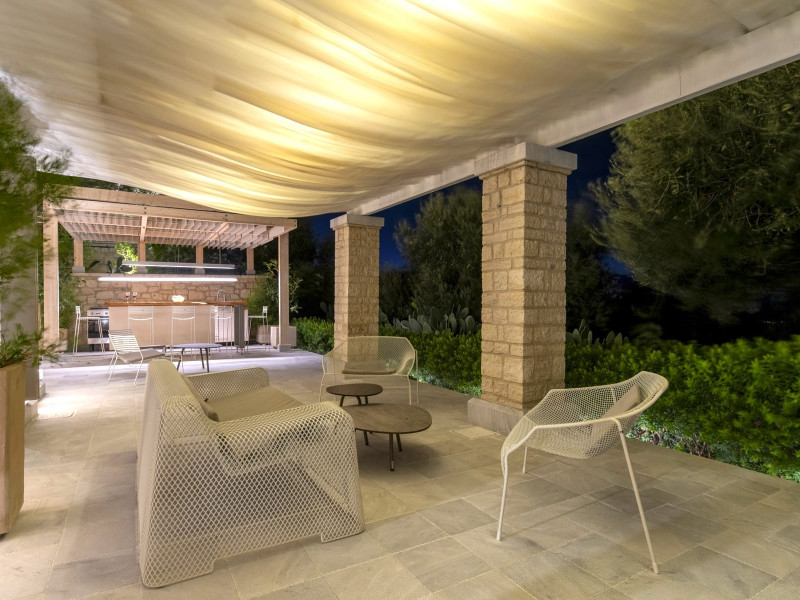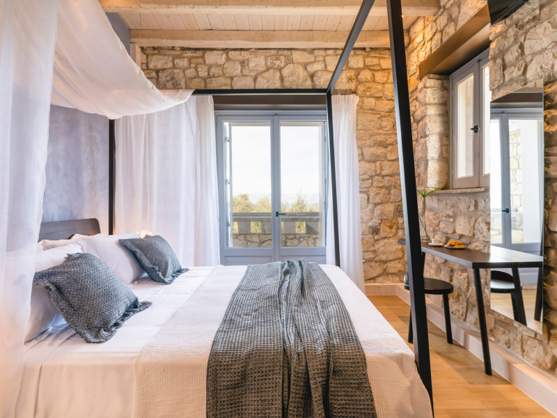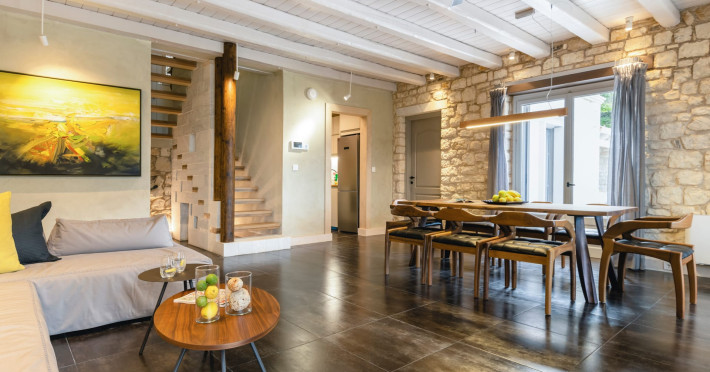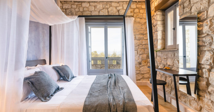Ionianstone Luxury Villas in Corfu feature two independent neighboring villas that can be enjoyed separately or together. Each villa can host up to 8 persons, features its own entrance, private outdoor living areas, swimming pool and hot tub. If booked together, the villas can host up to 16 persons. Each villa boasts a luxurious indoor space of 205 sq.m with an additional 210 sq..m of private outdoor living areas, a gated parking space that accommodates up to two cars and panoramic sea and mountain views.The property plot spans over 6,570 square meters. The elegant and luxurious design is both contemporary and timeless, with carefully chosen furnishings and decor that perfectly complement the stunning natural surroundings. IonianStone Luxury Villas in Corfu provide discerning travelers privacy and tranquility. LocationNestled on the slopes of Vasilika in the peaceful Perithia area, IonianStone Estate enjoys a privileged position in the northeastern part of Corfu. This serene setting offers rare seclusion, yet it’s located near Kassiopi and Agios Stefanos—two of the island’s most exclusive coastal destinations, known for their crystal-clear waters, elegant dining, and understated luxury. Indoor spacesEach villa features generous indoor spaces:living room,dining area for 8 guestsfully equipped kitchen4 beautifully decorated rooms: 3 double master bedrooms with en-suite bathrooms with a shower and 1 additional double room with an adjacent bathroom with a shower. Two of the bedrooms are on the first floor, offering balconies overlooking the sea. Outdoor spacesEach villa guarantees privacy and offers:shaded pergola and sun-bathed terraces32 sq.m. private poolhydro massage for 5 persons outdoor dining for 8 personslounge areas to relax and enjoy the gorgeous views.fully equipped outdoor kitchen, with a kitchen island bar to enjoy breakfast, a meal or a drink al fresco. It may also facilitate the services of a private chef, who can access it directly from the outside, so that the privacy of the house is protected. AmenitiesThe villas are equipped with every modern amenity, including:air-conditioning / heatingceiling fans in all roomsSonos speakers,smart TV in all roomshigh-speed Wi-Fi connectivityoutdoor training equipmentin-pool training equipment Frequently Asked Questions1. What are the check-in and check-out times at IonianStone Luxury Villas?Check-in starts at 16:00 and check-out must be completed by 11:00. Early check-in or late check-out is possible upon request and subject to availability.2. How many persons does the property host?Ionianstone Luxury Villas in Corfu feature two independent neighboring villas that can be enjoyed separately or together. Each villa can host up to 8 persons, features its own entrance, private outdoor living areas, swimming pool and hot tub. If booked together, the villas can host up to 16 persons.3. Are the villas suitable for families or groups?The villas are designed for families or groups, offering spacious layouts for a comfortable stay, with options for both indoor and outdoor gathering or privacy. You can enjoy one villa if you are a group of up to 8 persons or both villas if your group is up to 16 persons.4. Is parking available at the property?Yes, the property offers gated parking space, that accommodates up to 2 cars per villa (4 cars total)5. Is there a reception or concierge service?We will arrange to welcome you when you arrive and we are available by phone or WhatsApp for any assistance you may need during your stay at info@ionianstone.com or WhatsApp at +306948549826.6. Is housekeeping provided?Yes, we offer housekeeping a week linen/towel change twice a week.7. Do you provide cots or high chairs for infants?Yes, cots and high chairs are provided free of charge, upon request.8. Is there Wi-Fi in the property?Yes, free high-speed Wi-Fi is available.9. Are pets allowed?No, pets are not allowed.10. Is smoking allowed?Smoking is not allowed inside the houses, smoking is allowed in the common outdoor areas.11. How far is the property from nearby beaches and attractions?Nestled on the slopes of Vasilika in the peaceful Perithia area, IonianStone Estate enjoys a privileged position in the northeastern part of Corfu. This serene setting offers rare seclusion, yet it’s located near Kassiopi and Agios Stefanos—two of the island’s most exclusive coastal destinations, known for their crystal-clear waters, elegant dining, and understated luxury.Here are some indicative distances:-Almiros 3.2 km: Long, quiet beach with tavernas.-Acharavi 4.4 km: the nearest village with super markets bakeries, shops, tavernas and a long beachline .-Kalamaki 5.1 km : Sandy, clean beach with sunbeds and two tavernas.-Kassiopi 9.6 km: Popular village with a port, nightlife, and small coves for swimming.-Avlaki 11.9 km: Quiet, clean pebbly beach with two tavernas.-Agios Stefanos 15 km: Smaller popular port with tavernas.-Kerasia 16.8 km: Quiet, clean pebbly beach with one fish tavern.-Loggas 19.4 km: Spectacular coast, especially for sunset, on the west.-Old Peritheia 11.4 km : An abandoned Venetian village with 3-4 tavernas-Corfu Town 42.8 km: a blend of cultural histories and influences – French, English, Venetian, and, of course, Greek12. Do you provide chef services?Yes, we can arrange chef services at an additional charge, upon request (subjects to availabiltity). Please contact us in advance at : info@ionianstone.com13. Do you provide transfers to/from the airport or port?Yes, we can arrange transfers at an additional charge, upon request (subjects to acailabiltity). Please contact us in advance at : info@ionianstone.com14. Do you provide spa services?Yes, we can arrange spa services upon request, directly in the comfort of the villa (subjects to availabiltity). Please contact us in advance at : info@ionianstone.com15. Do you provide suggestions about activities, day trips, places to eat on the island?Of course! We provide our guests a guidebook with a curat