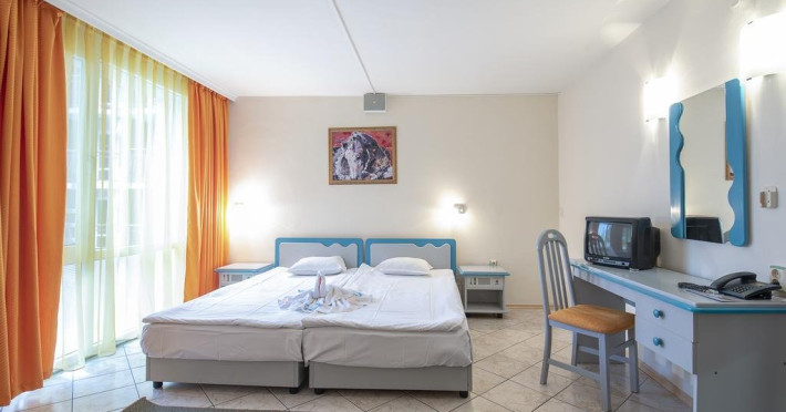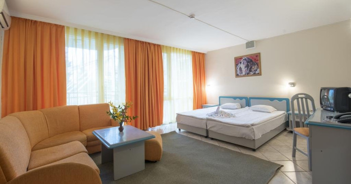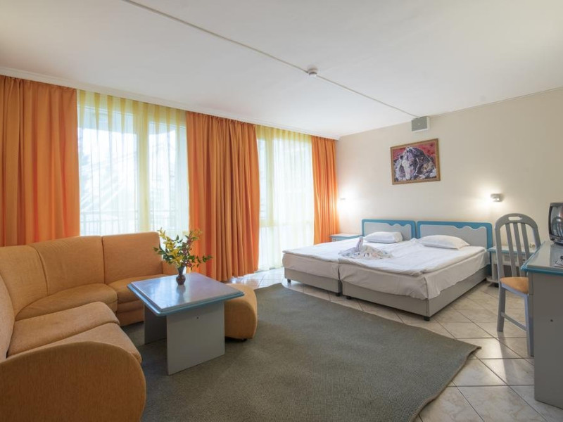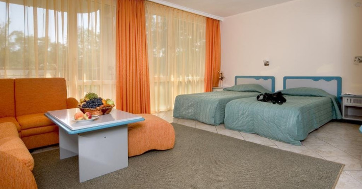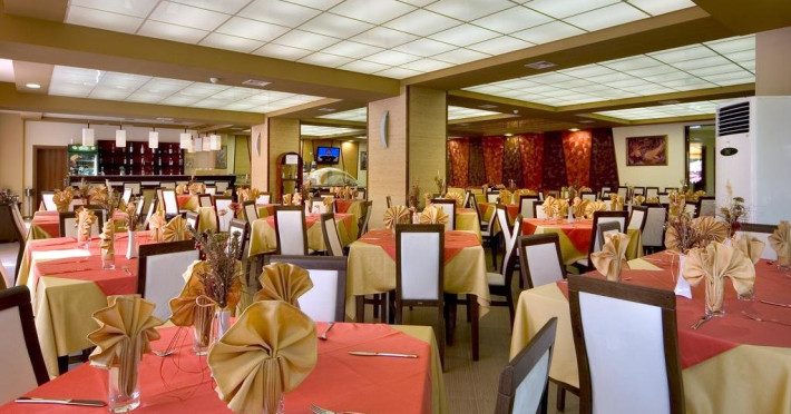 Mancare si bauturi: 07.00 - 10.00 Mic dejun, bufet in restaurantul principal: varietate de preparate calde si reci, specialitati din oua, varietate de produse lactate, carnati si branzeturi, selectie de produse de panificatie, cereale, fructe cu cafea, ceai si lapte incluse 10.30 - 11.30 Mic dejun tarziu la barul de la piscina 12.00 - 14.00 Pranz, bufet in restaurantul principal: selectie de salate si supe proaspete, varietate mare de preparate bulgaresti si internationale, preparate vegetariene si din carne, paste, selectie de produse de panificatie, bufet dulci cu diverse deserturi. 15.00 - 17.00 Inghetata, prajituri si produse de patiserie la barul de la piscina 18.00 - 20.30 Cina, bufet in restaurantul principal: selectie de salate si supe proaspete, varietate mare de preparate bulgaresti si internationale, preparate vegetariene si din carne, paste, selectie de produse de panificatie, bufet dulci cu diverse deserturi. 11.00 - 22.00 Bauturi alcoolice si nealcoolice bulgare la barul restaurantului si la barul de la piscina 10.00 - 22.00 Cafea, ceai si lapte la barul restaurantului si la barul de la piscina