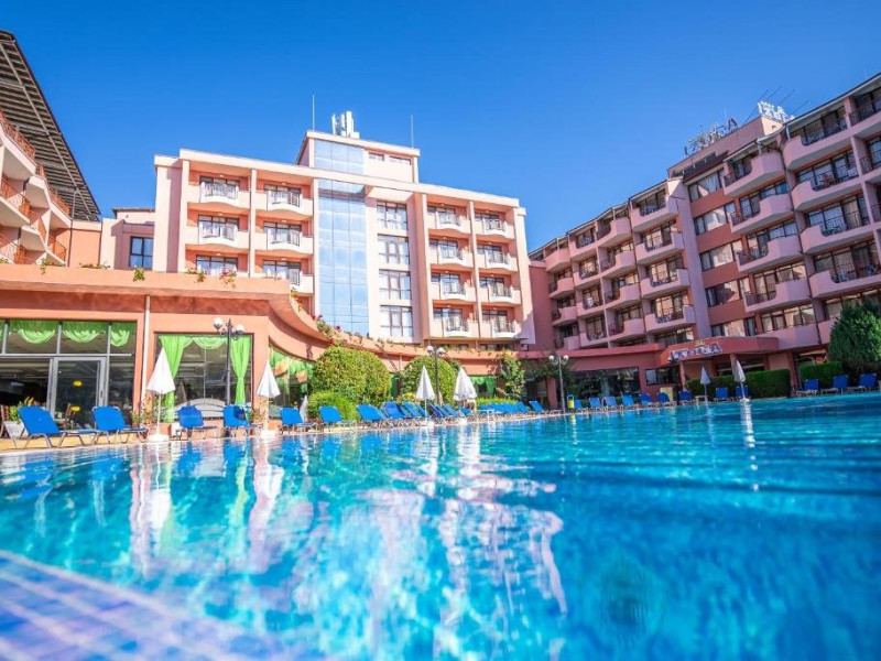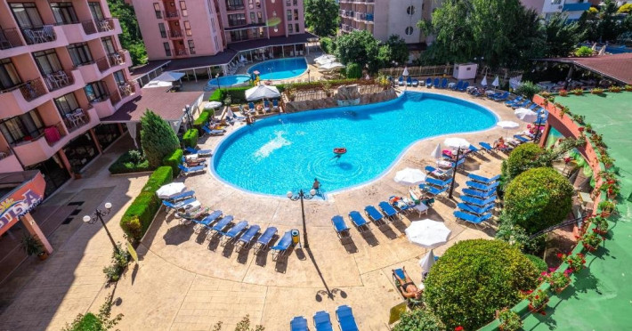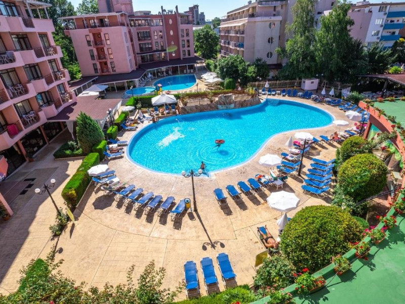 Sport si divertisment: Wifi Utilizarea gratuita a 2 piscine in aer liber si 1 piscina pentru copii Sezlonguri si umbrele de soare la piscina Animatie de zi (piscina, jocuri etc.) - de 6 ori pe saptamana Animatie de seara (spectacole, etc.) - de 6 ori pe saptamana Darts, tenis de masa Fitness Pentru copii: Discoteca pentru copii - de 6 ori pe saptamana Piscina pentru copii Colt de joaca Club pentru copii - 4 - 12 ani. o. Scaune pentru copii in restaurante Servicii plata suplimentara: Spalatorie Masa de fotbal, Biliard Patut pentru copii - 5 BGN pe zi Seif la receptie - 5 BGN pe zi Sala de jocuri video Inchiriere de masini Medic - la cerere - extern Centru spa