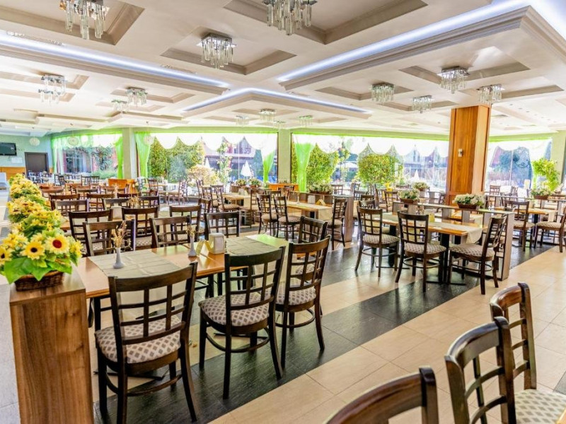 Mancare si bauturi: - Mic dejun tip bufet (restaurant principal) - 07:30-10:00 - preparate reci si calde, specialitati cu oua, carnati si branzeturi, cereale, gustari, fructe si legume, bauturi calde, bauturi racoritoare, apa - Bar la piscina: 10:00-11:00 h - Fursecuri, prajituri - Pranz tip bufet (restaurant principal): 12:00-14:00 - salate, aperitive, supe, feluri principale, carne si specialitati vegetariene, deserturi, fructe, bauturi calde, bauturi racoritoare, bere la halba, vin - Bar la piscina: 10:00-17:00 - Inghetata - Bar de la piscina: 15:00-17:00 h - Fursecuri, prajituri, fructe, sandvisuri - Cina tip bufet (restaurant principal): 18:00-21:00 - salate, aperitive, supe, feluri principale, deserturi, fructe, bauturi calde, bauturi racoritoare, bere la halba, vin - Bar la piscina: 10:00-23:00 - Bauturi alcoolice si nealcoolice locale, cocktailuri, ceai, cafea