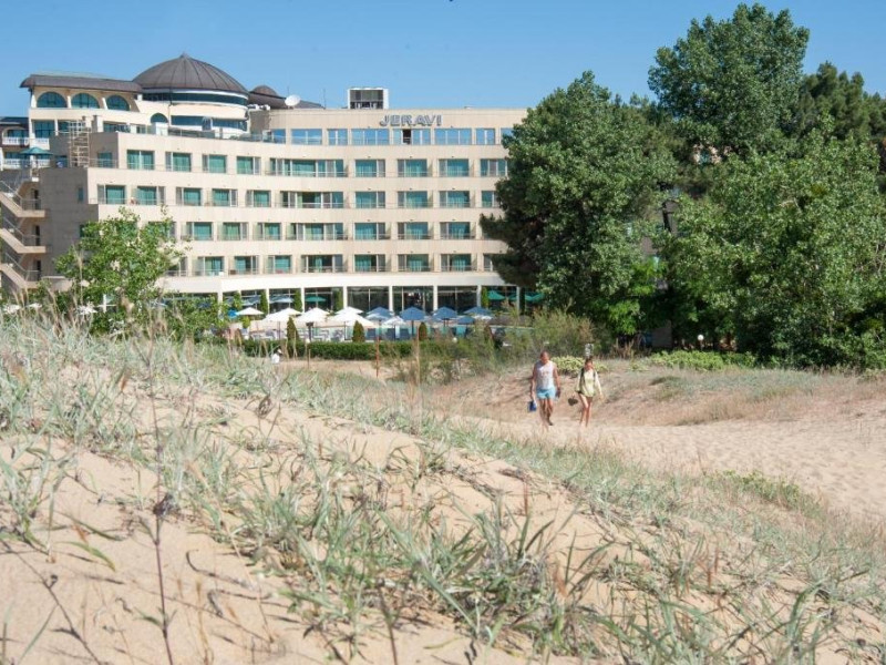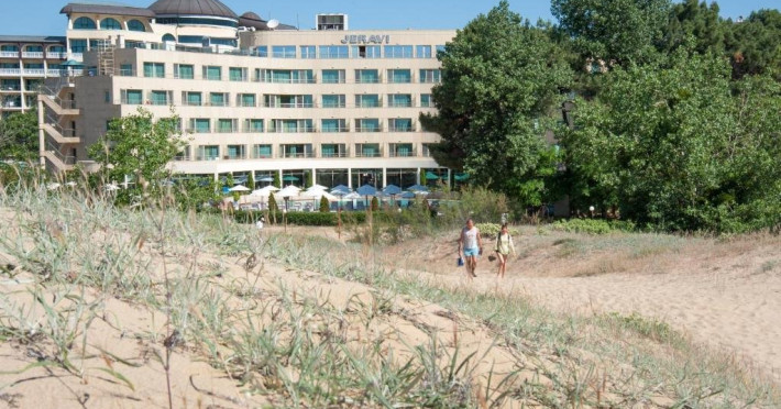 Hotelul Jeravi Beach este situat in imediata apropiere a plajei, a tuturor atractiilor si obiectivelor turistice din Sunny Beach. La 8 km de hotel se afla portul Sf. Vlas. Aeroportul Burgas este la 29 km, iar orasul Varna este la 90 km. Plaja: cu nisip, in fata hotelului. Fundul marii este plat, cu acces lin. Plaja este castigatoarea premiului Steagul Albastru. Cazare: Hotelul dispune de 1 lift si 68 de camere cu design modern. DBL 2+0: Aprox. suprafata este de 15 mp. Exista doua paturi, un balcon, aer conditionat centralizat, TV prin satelit, telefon, acces gratuit la internet Wi-Fi, seif gratuit, frigider, ceainic electric si baie cu dus sau cada, toaleta si uscator de par. Capacitatea maxima este de 2 adulti. DBL 2+1: Aprox. suprafata este de 20 mp. Exista un balcon, aer conditionat centralizat, TV prin satelit, telefon, acces gratuit la internet Wi-Fi, seif, frigider, ceainic si baie cu dus sau cada, toaleta si uscator de par. Exista 2 paturi de o persoana sau un pat dublu si fotoliu extensibil. Capacitatea maxima este de 3 adulti. DBL 2+2: Aprox. suprafata 25 mp. exista balcon, aer conditionat centralizat, TV prin satelit, telefon, acces gratuit la internet Wi-Fi, seif, frigider, ceainic electric si baie cu dus sau cada, toaleta si uscator de par. Camerele au 2 paturi de o persoana sau un pat dublu si o canapea extensibila dubla. Capacitate maxima 4 adulti. *Este permisa gazduirea unui copil peste ocuparea maxima a camerelor. Patutul de copii este disponibil gratuit si la cerere prealabila. Animalele de companie nu sunt permise. Hotelul nu dispune de camere adaptate pentru persoane cu dizabilitati. Zonele comune au rampe pentru a oferi acces pentru scaune cu rotile la piscina sau plaja. Despre hotel: Receptie cu program de lucru de la 08:00 la 18:00, restaurant principal cu terasa, lobby bar, Wi-Fi, piscina exterioara, hol, gradina, lift la toate etajele si parcare. Pentru cei mai mici oaspeti, hotelul pune la dispozitie o sectiune pentru copii in piscina exterioara cu adancimea de 60 cm, programe de animatie, babyphone si posibilitatea de a incalzi biberoanele. Sport si divertisment: Hotelul Jeravi Beach dispune de piscina exterioara cu umbrele, sezlonguri, saltele si prosoape (se cere depozit), fitness, darts, polo pe apa, gimnastica acvatica, aerobic.