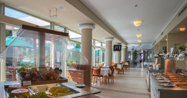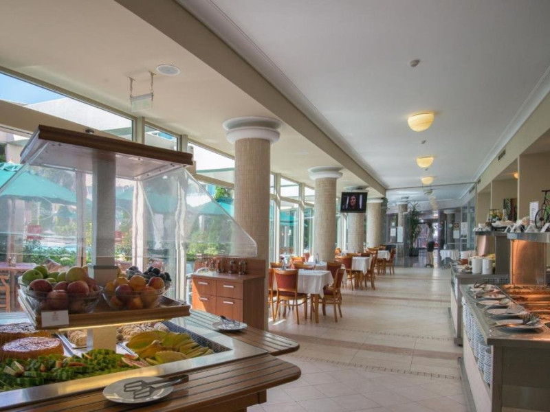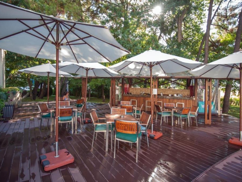 Mancare si bauturi: - Mic dejun tip bufet - 07:30 - 10:00: varietate de preparate calde si reci, specialitati din oua, varietate de lactate, carnati si branzeturi, selectie de produse de panificatie, cereale, fructe. Bauturi: cafea, cola (coca, Fanta, coca fara zahar, tonic, sifon) si apa, sucuri necarbogazoase (portocale, mere si cirese). - Mic dejun tarziu pe terasa restaurantului - 10:30 - 11:00 Carnati, branza, rosii, castraveti, paine si fructe de sezon - Pranz tip bufet - 12:00 - 14:00 cu posibilitate de meniu vegetarian (paste, legume, risotto, cartofi, selectie de fructe de mare de salate si supe proaspete, o mare varietate de preparate bulgaresti si internationale, mancaruri vegetariene si din carne, paste, selectie de produse de panificatie, bufet dulci cu o varietate de deserturi. Bauturi fara soke, cafea, Fantada si cola (coke) apa, sucuri necarbogazoase (portocale, mere si cirese), vin - alb, rose, rosu, bere (de la barul de la piscina). - Gustare de dupa-amiaza la terasa restaurantului - 14:30 - 16:00 cu cartofi prajiti, carnati, carnati, fripturi, carne de pui, salate, paine si fructe de sezon. Mic dejun usor pe terasa restaurantului - 16:00 - 17:00 prajituri, biscuiti, dulciuri - Cina tip bufet cu show-cooking - 18:00 - 21:00 selectie de salate si supe proaspete, o mare varietate de mancaruri bulgaresti si internationale, mancaruri vegetariene si din carne, paste, selectie de produse de panificatie, bufet dulci cu o varietate de deserturi. Bauturi: cafea, cola (coca, Fanta, cola fara zahar, tonic, sifon) si apa, sucuri necarbogazoase (portocale, mere si cirese), vin - alb, rose, rosu, bere (de la barul de la piscina). - Inghetata in restaurantul principal - Bauturi la barul de la piscina si la barul din hol intre orele 09:00 - 23:00: Alcoolice locale (cocktail-uri din meniu, bere la halba, vin rosu, vin alb, coniac, whisky, vodca, gin, rom, tequila, sampanie), bauturi racoritoare - sucuri, Coca-Cola, Fanta, Sprite, Tonic, Soda de la aparat si bauturi calde - cafea, ceai, lapte, cappuccino * Cafea si ceai in camere *Hotelul isi rezerva dreptul de a modifica programul All Inclusive.
