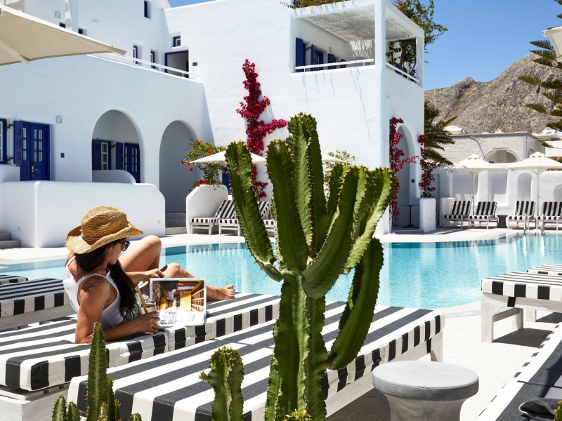 Nestled in Perissa, Santorini, Kouros Village blends Cycladic charm with modern comforts for an unforgettable stay. Since 1993, our boutique, adults-only hotel has offered 35 elegant rooms, lush gardens, and a turquoise pool just steps from the famous black-sand beach. Relaxing yet revitalizing, indulgent yet authentic—Kouros Village is your romantic escape in the heart of the Cyclades.Here, the timeless beauty of Santorini is felt in every moment. Wander among vibrant bougainvillea, soak in the serenity of island life, and savor the timeless beauty of the Aegean. Kouros Village is more than a retreat—it is a place where memories are made to last a lifetime.