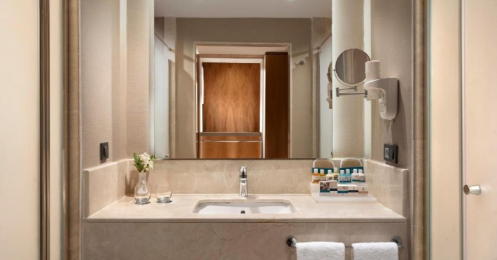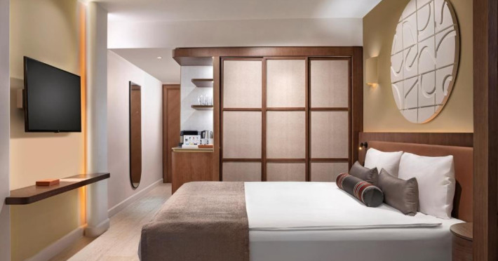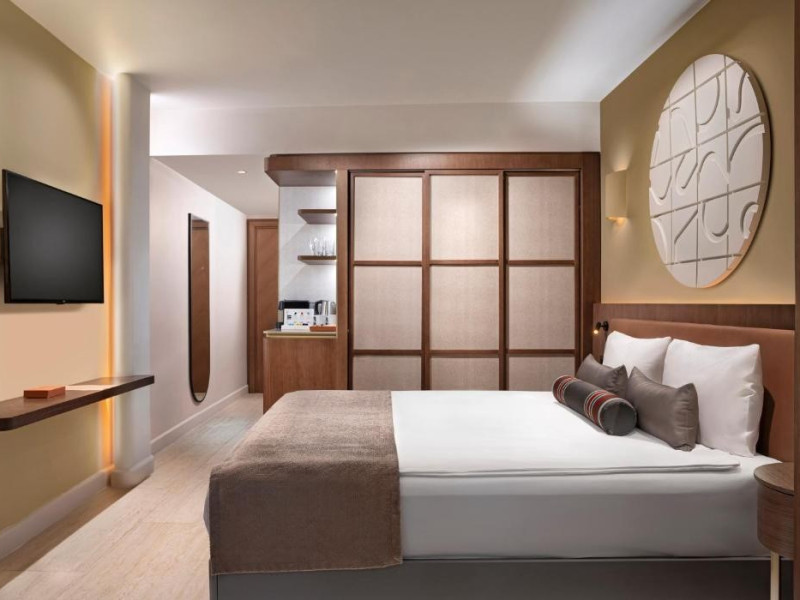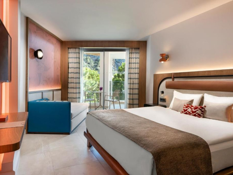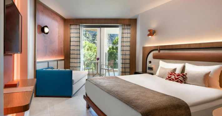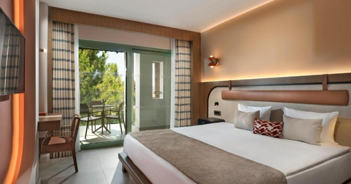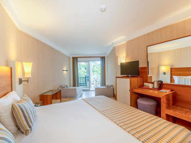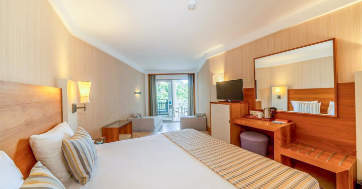 Camera dubla, vedere la peisaj: baie/WC (uscator de par), aer conditionat, TV, telefon, wifi (gratuit), seif (gratuit), minibar (acumulat cu bauturi racoritoare si bere), facilitati pentru prepararea de ceai si cafea, balcon sau terasa, suprafata camerei 24 m2.