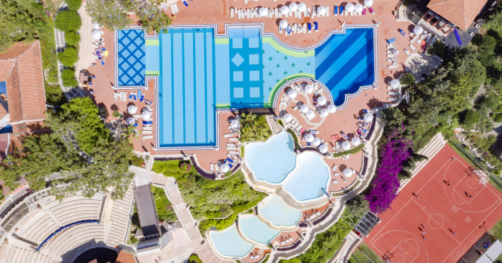 Complexul hotelier este format din doua hoteluri separate. Un hotel este destinat exclusiv adultilor, iar celalalt este destinat familiilor cu copii. Persoanele cu varsta peste 16 ani pot utiliza, de asemenea, toate serviciile hotelului, care este destinat exclusiv adultilor.