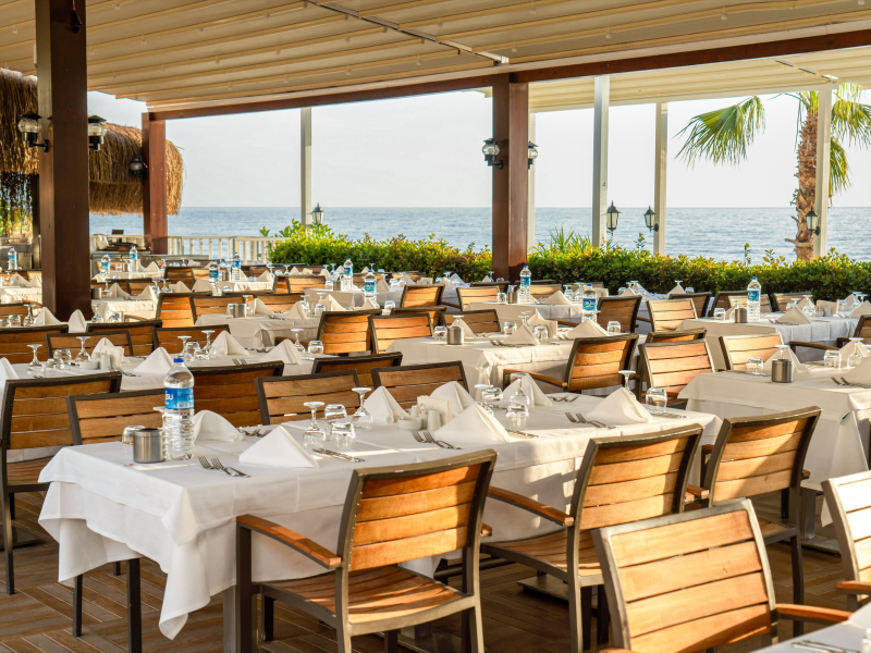 Cina disponibila in 8 restaurante à la carte contra cost (19:30-22:00, cu rezervare necesara, international, turcesc, mediteranean, italian (doar pentru adulti), friptura (doar pentru adulti), peste, 2x asiatic)