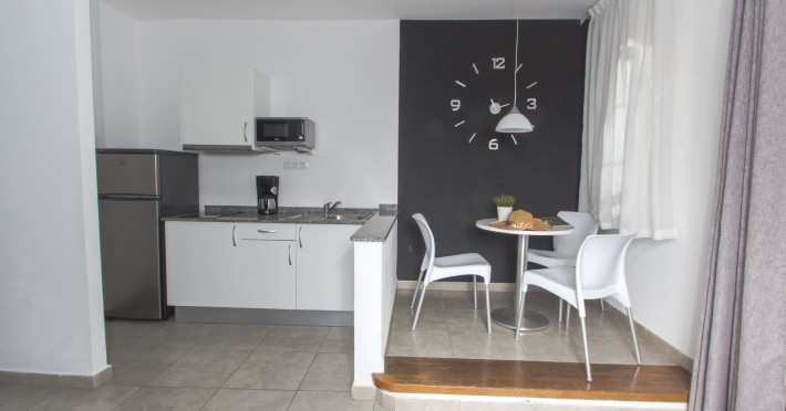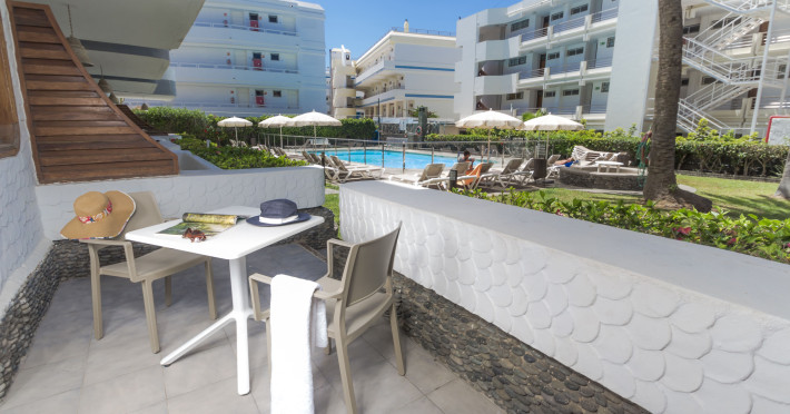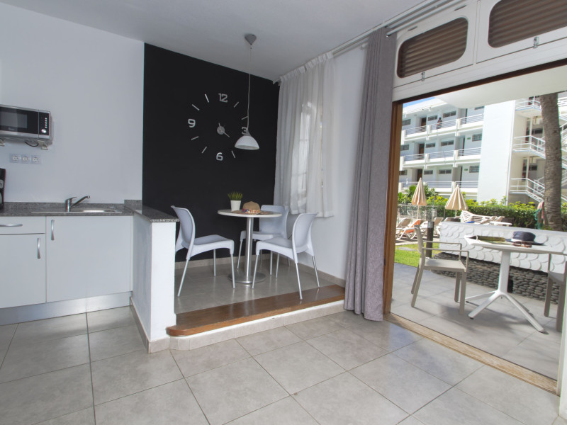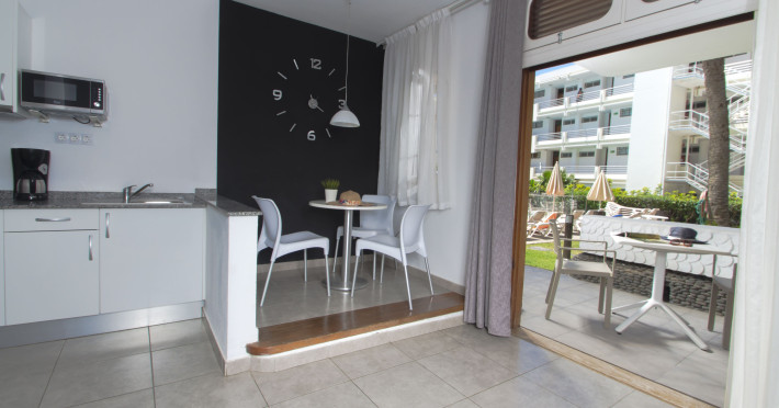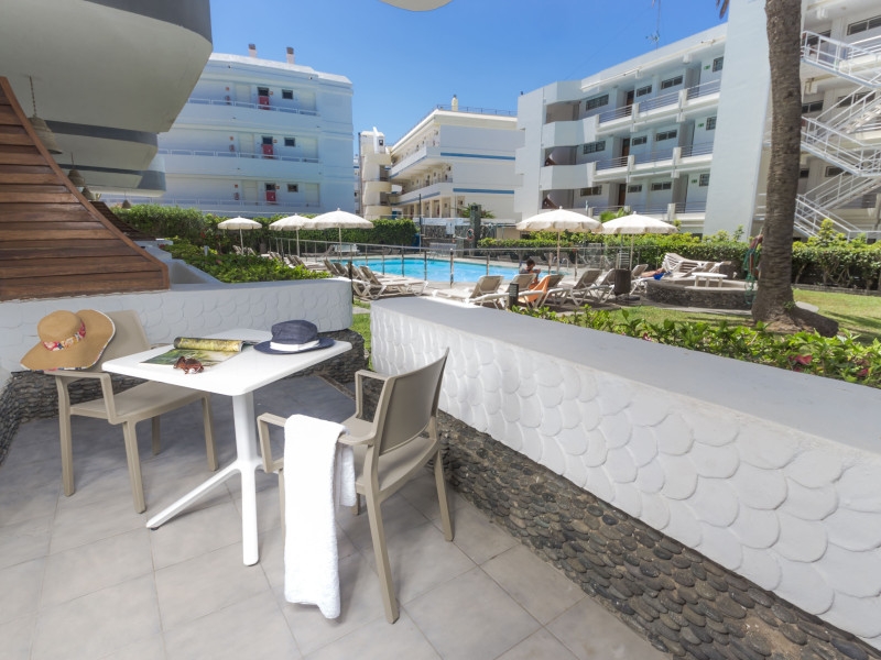 Around 150 m from a public sandy beach and approximately 200 m from the sea lies the aparthotel Alsol Mariachis. The nearest restaurants and bars can be reached in a few minutes on foot. The old town is around 4 km away. You can find a range of shops and a supermarket directly on your doorstep. There is a 24h shuttle service between the hotel and the airport (for a fee) 24h a day. Nearby there is a disco which offers entertainment in high season. On the beach are cushions for a fee available. Near the beach there is a promenade where you can go for a stroll. The hotel is equipped with a reception (check-in is possible around the clock), Wi-Fi, internet access, a first aid kit as well as a TV lounge with satellite TV. In the outdoor area of the property you will find a garden as well as a pool (open all year), where sun loungers and sun umbrellas are available for free. Furthermore, you can relax outdoors on the sun terrace. You can store your valuables in the safe (extra fee), and your luggage in the hotel`s storage room. For very young guests, cots can also be provided. If you want to explore the holiday region, you can use the car and motorbike rental service close to the hotel. In your hotel, a lot of focus is placed on sustainability. This includes among others the provision of soap, shampoo and lotion dispensers. Euro/Master Card and Visa are accepted as means of payment. Distances