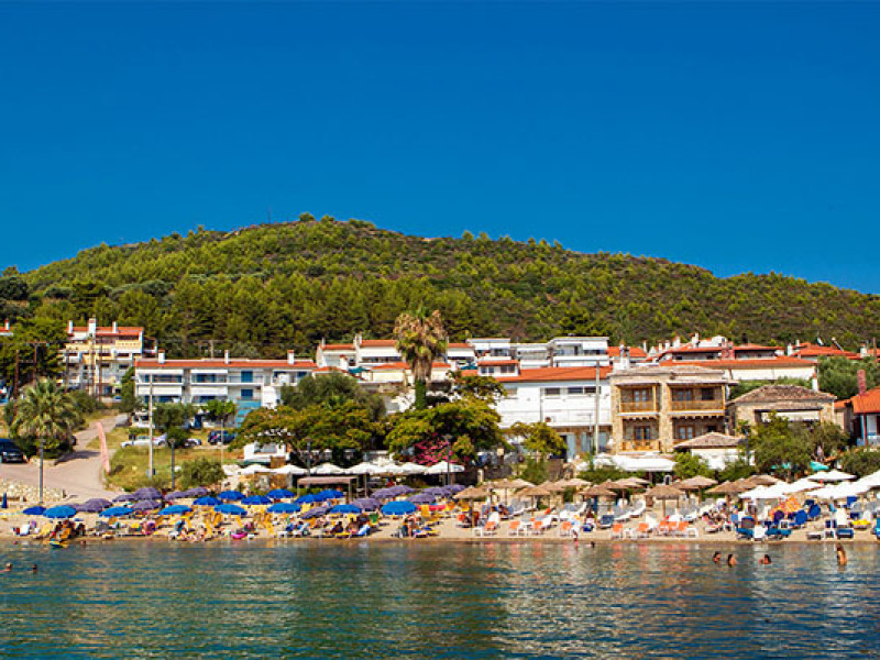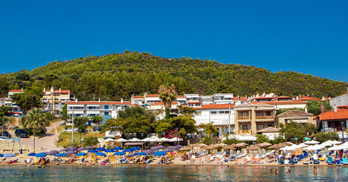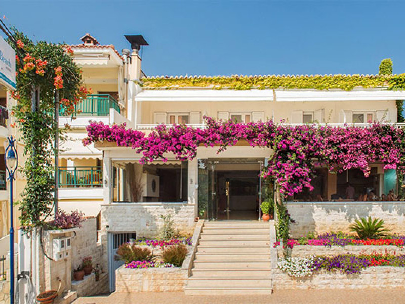 Located ideally on the southwestern edge of the Peninsula of Kassandra; Loutras Idillic scenery combines majestic caves and caverns formed by the rocks of the Aegean Sea with the lush pine forests of Agia Paraskevi. Located by the sea, 50m from the beach and a 300m walk to the thermal baths of Agia Paraskevi. This family-run hotel consists of 22 stylish and elegantly decorated rooms, ready to offer you unforgettable holidays. All rooms of Hotel Loutra Beach have been renovated in 2005-2006 and are fully equipped with modern services to satisfy your every need. In the main dining room with a beautiful view of the garden, one can taste the traditional Greek cuisine. Two meals, breakfast and dinner, are offered daily in buffet form. The Restaurant is open daily from 08:00 till 10:00 for breakfast and from the 19:00 till 21:30 for dinner. In the refined and comfortable space of the bar you can choose from a wide variety of drinks, wines, snacks and cocktails inspired by Mediterranean colors and flavors.