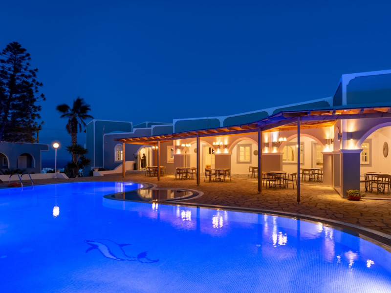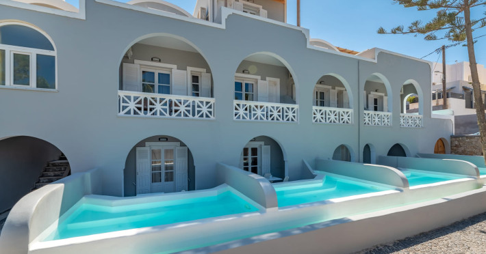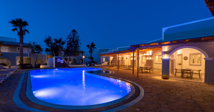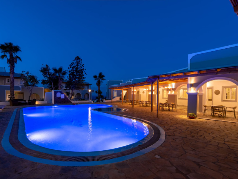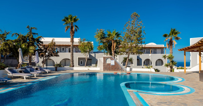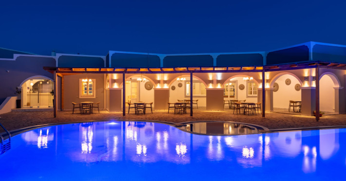 Welcome to Maistros Village Hotel in Santorini. The famous island of the volcano with the most magical views of the sunset in all the Aegean!Maistros Village Hotel is situated in the graphic village of Karterados, just a kilometre from Fira, in the centre of the island of Santorini.The complex (four buildings) consists of 42 rooms, standard rooms, superior rooms, apartments, maisonettes, designed in the traditional style of the island, with all modern comforts.Have an unforgettable, enjoyable holiday at Maistros Village in a warm and friendly atmosphere! The complex Maistros Village inspired by the colors of Santorini and dedicated to hospitality looking forward to spending unforgettable vacations.
